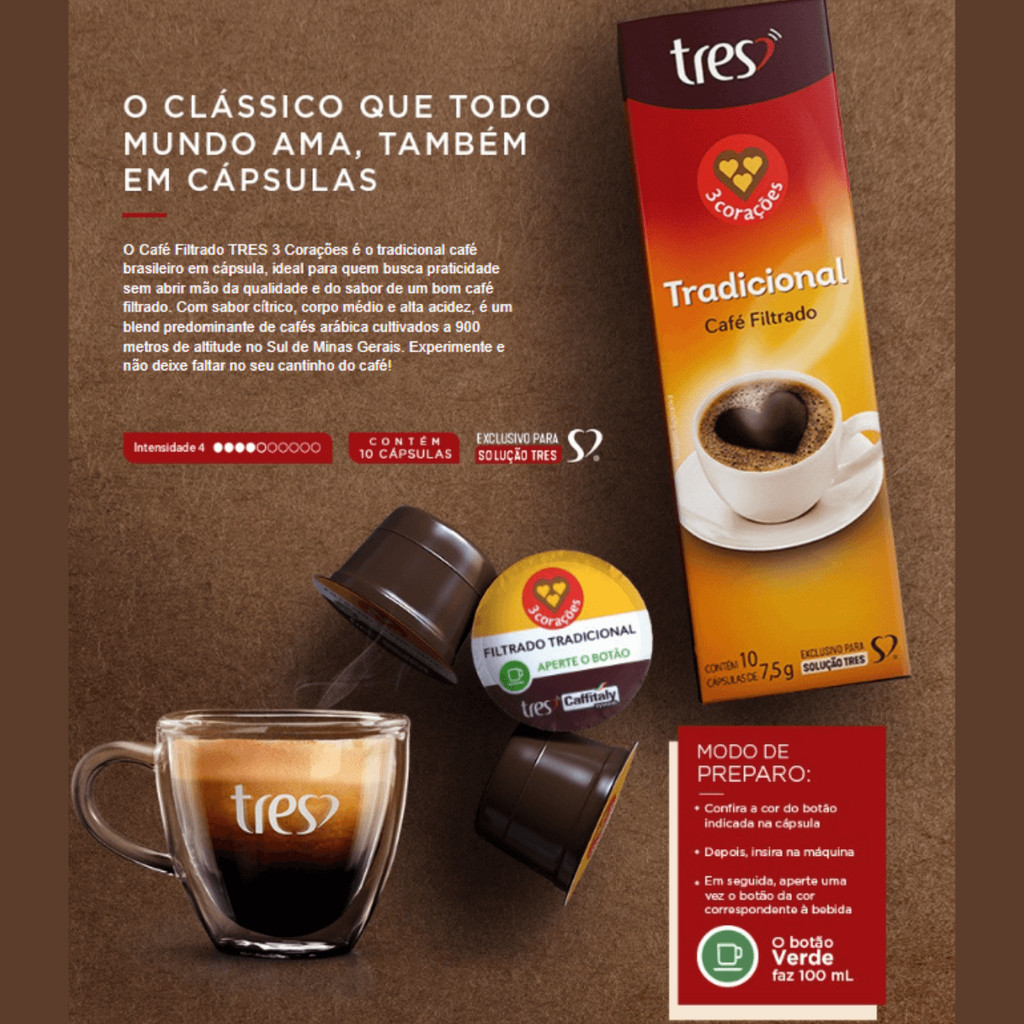 3x Cápsula de Café Tres 3 Corações Filtrado Tradicional 10 Unidades