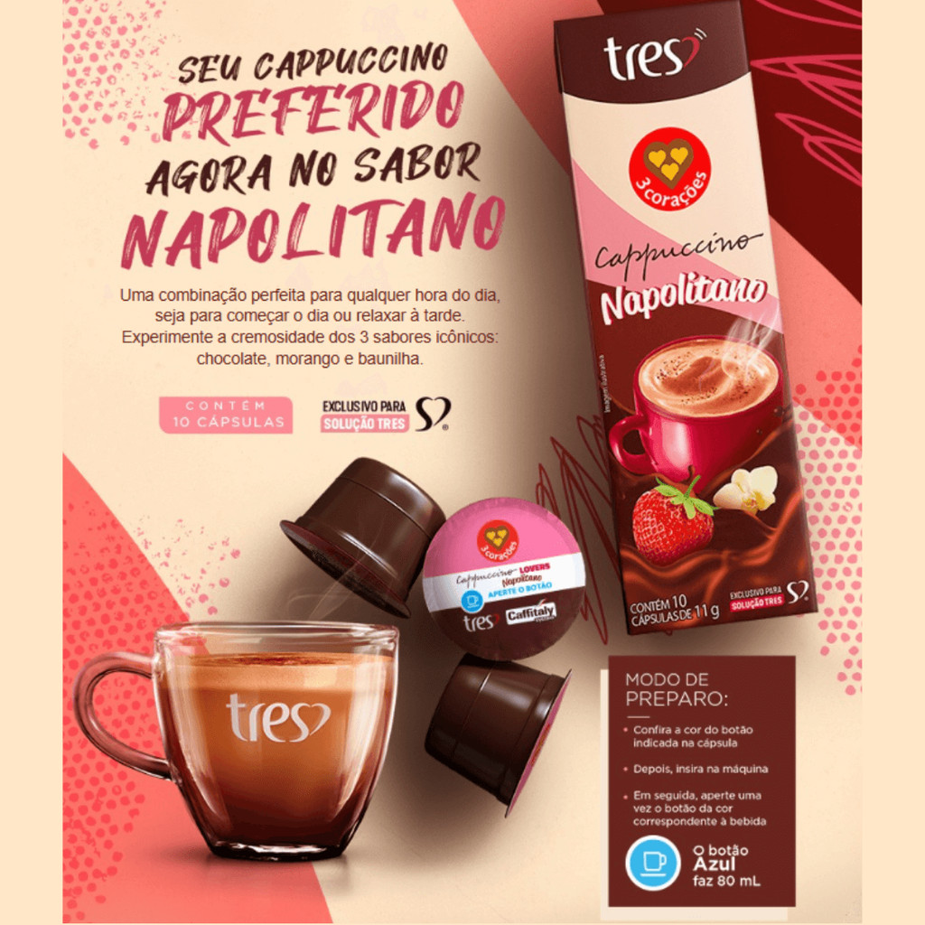 Cápsula de Café Tres 3 Corações Cappuccino Napolitano 10 Unidades