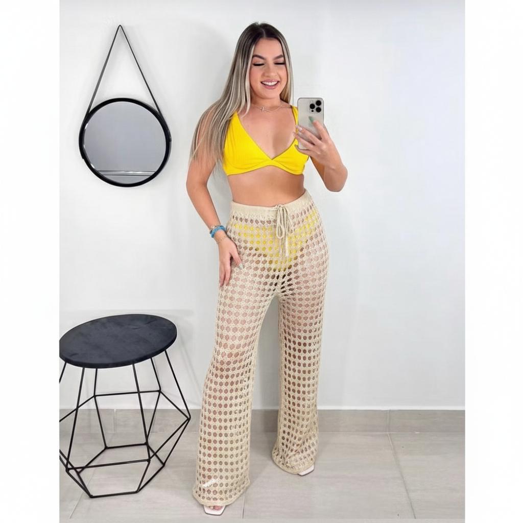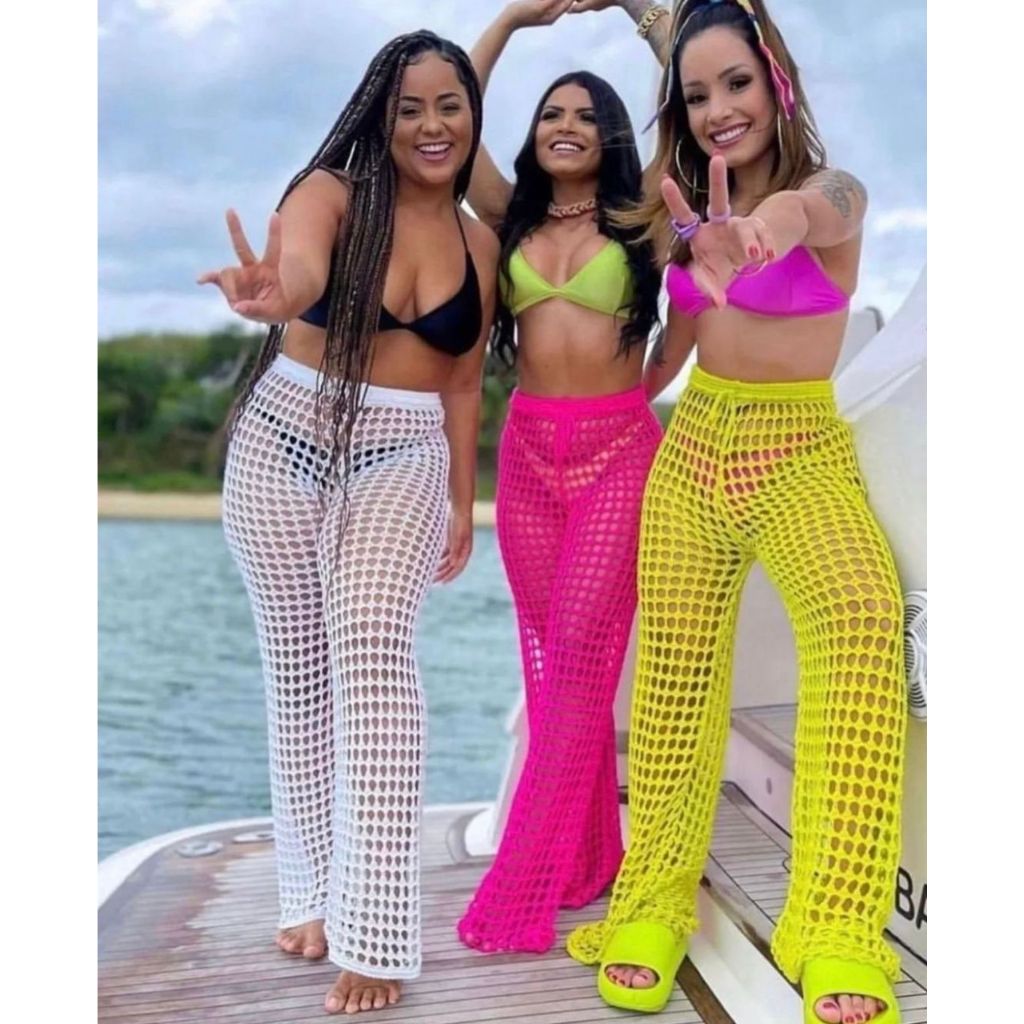 Saida De Praia Calca Feminina Trico Moda Verao Tricot