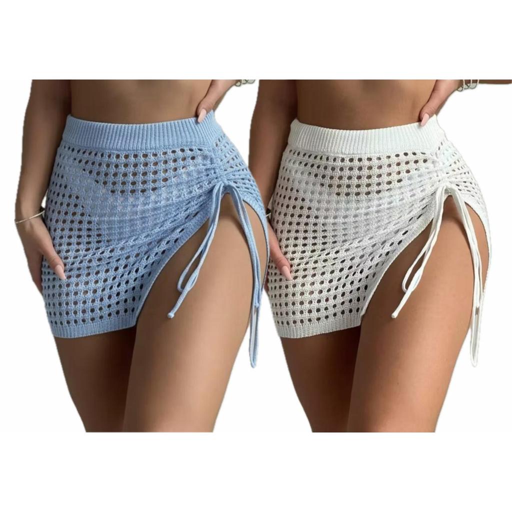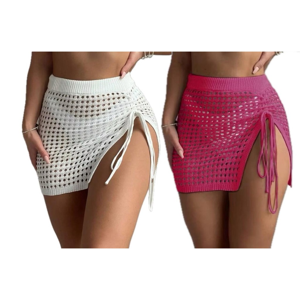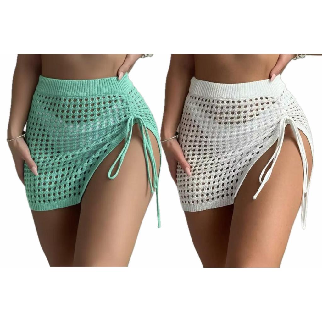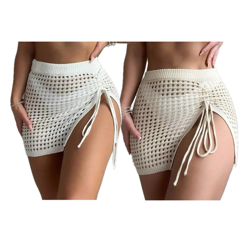 Kit 2 Saídas de Praia Saia Tricô Crochê Com Cordão Lateral Feminina Moda Verão