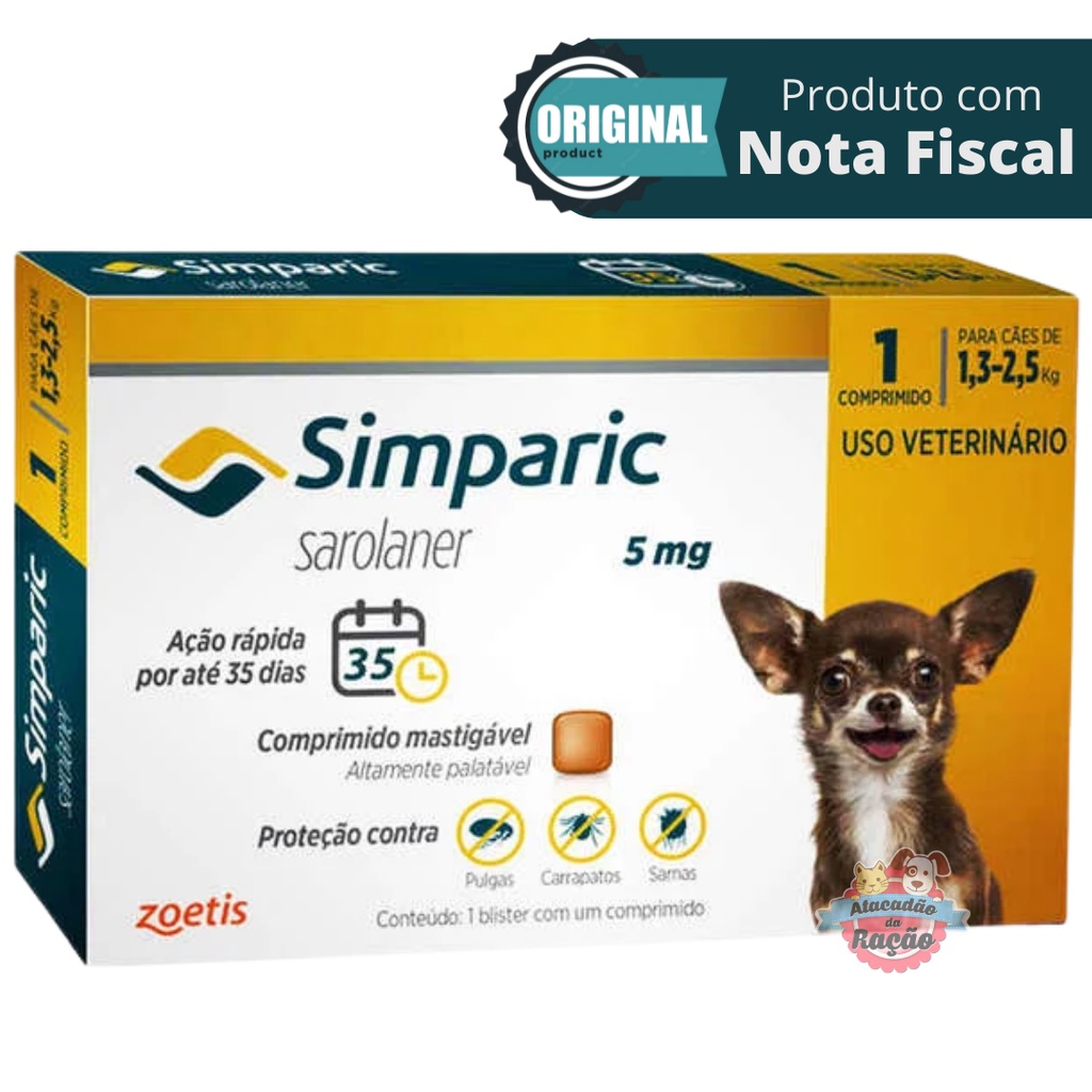 Simparic Para Cães 1,3 A 2,5 Kg (5 mg) - 1 Comprimido VENC SET26