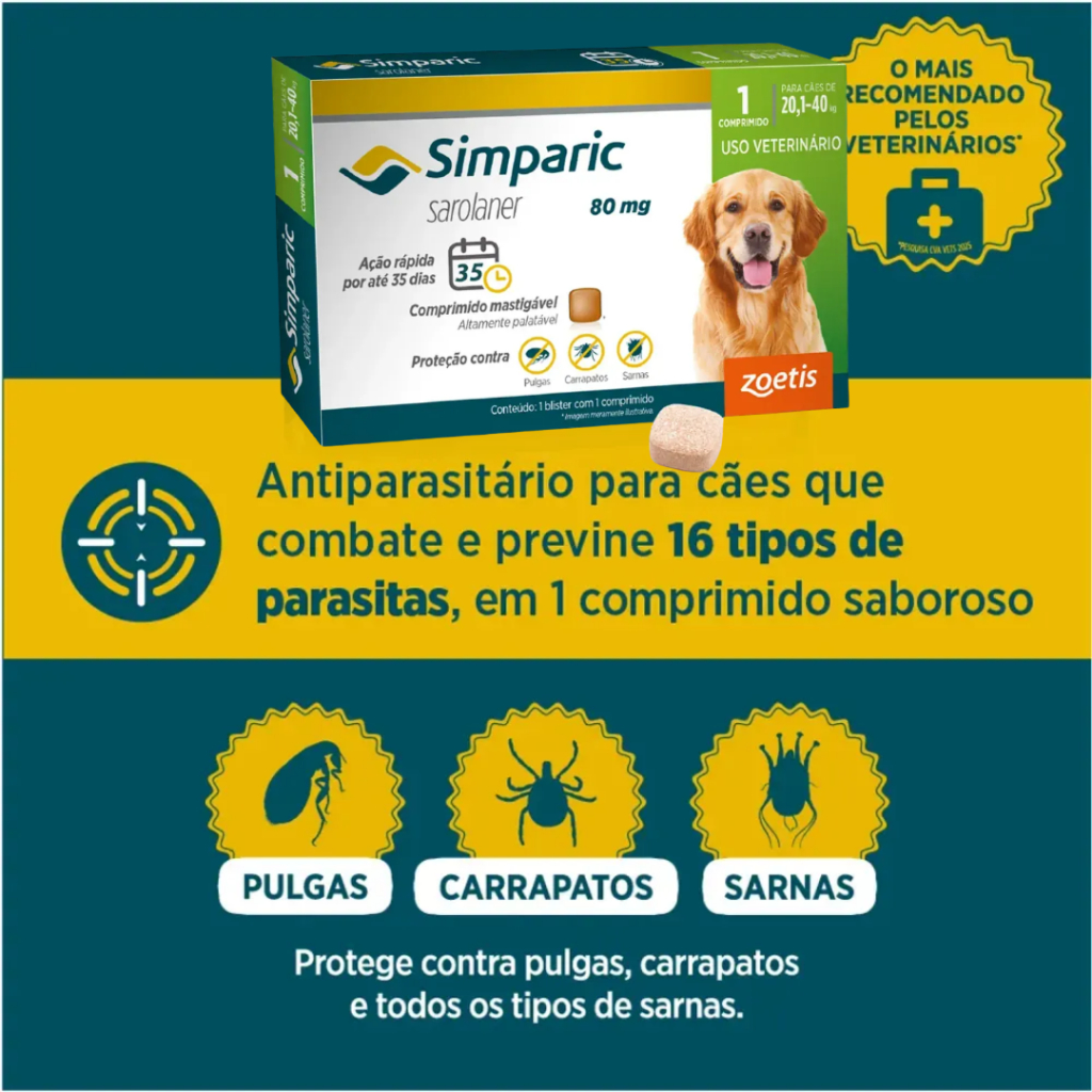 Kit 2x Simparic Antipulgas E Carrapatos Cães 20,1 A 40kg 1 Comprimido