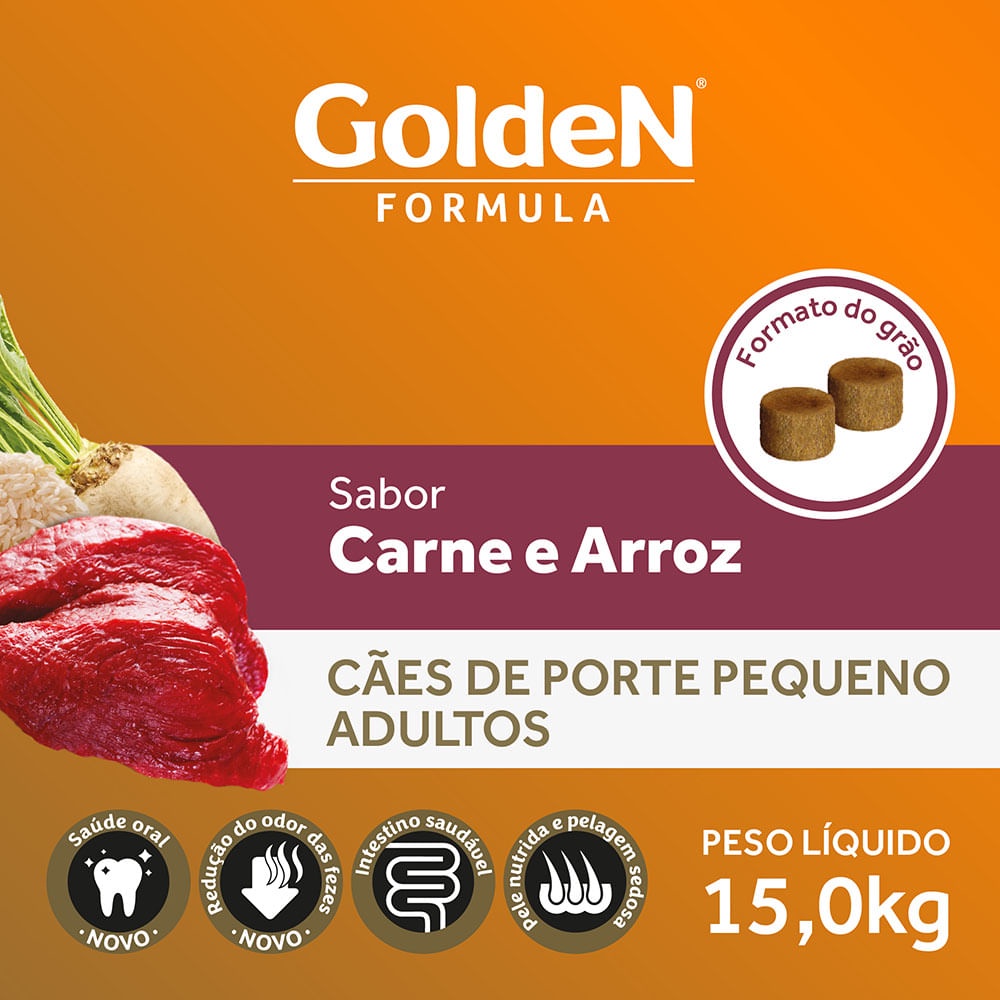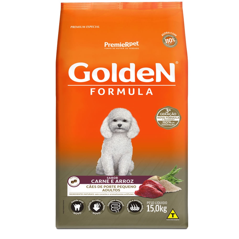 Ração Golden Formula Cães Adultos Raças Pequenas Mini Bits Carne e Arroz 15 kg