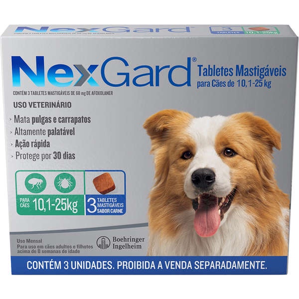 Nexgard Antipulgas E Carrapatos Cães 10,1 A 25Kg Com 3 Tabletes