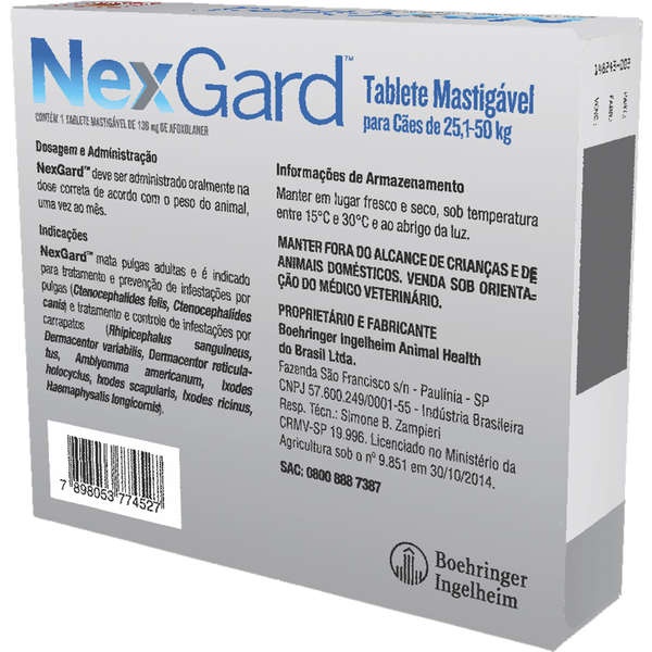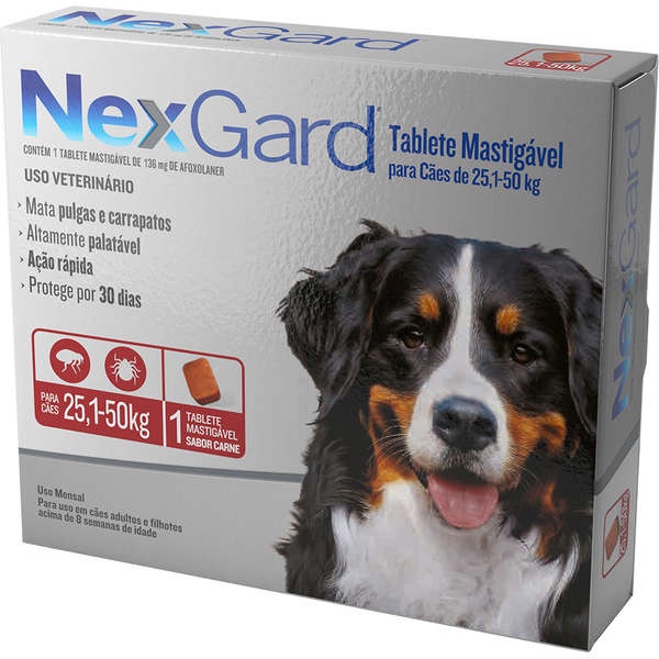 Antipulgas e Carrapatos NexGard 136mg para Cães de 25,1 a 50Kg Caixa Com 1 Tablete