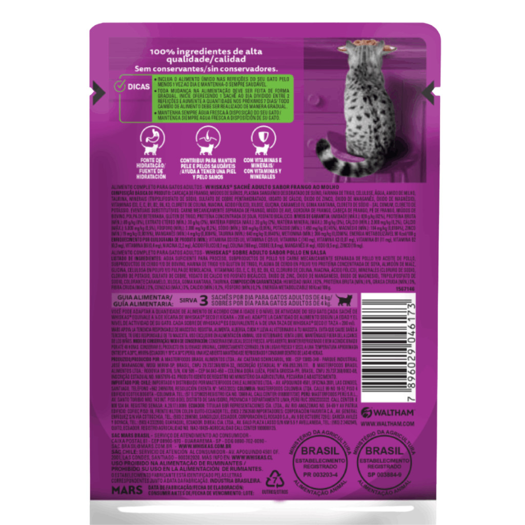 Whiskas Sachê Para Gatos Adultos Frango ao Molho - 85g Cada Sachê Em Combo