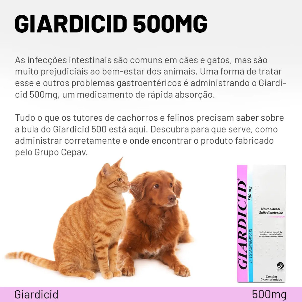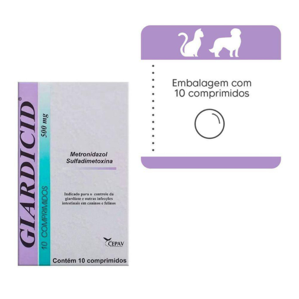 Giardicid 500mg Antibiótico Para Cães E Gatos 10 Comprimidos VENC MAIO.26