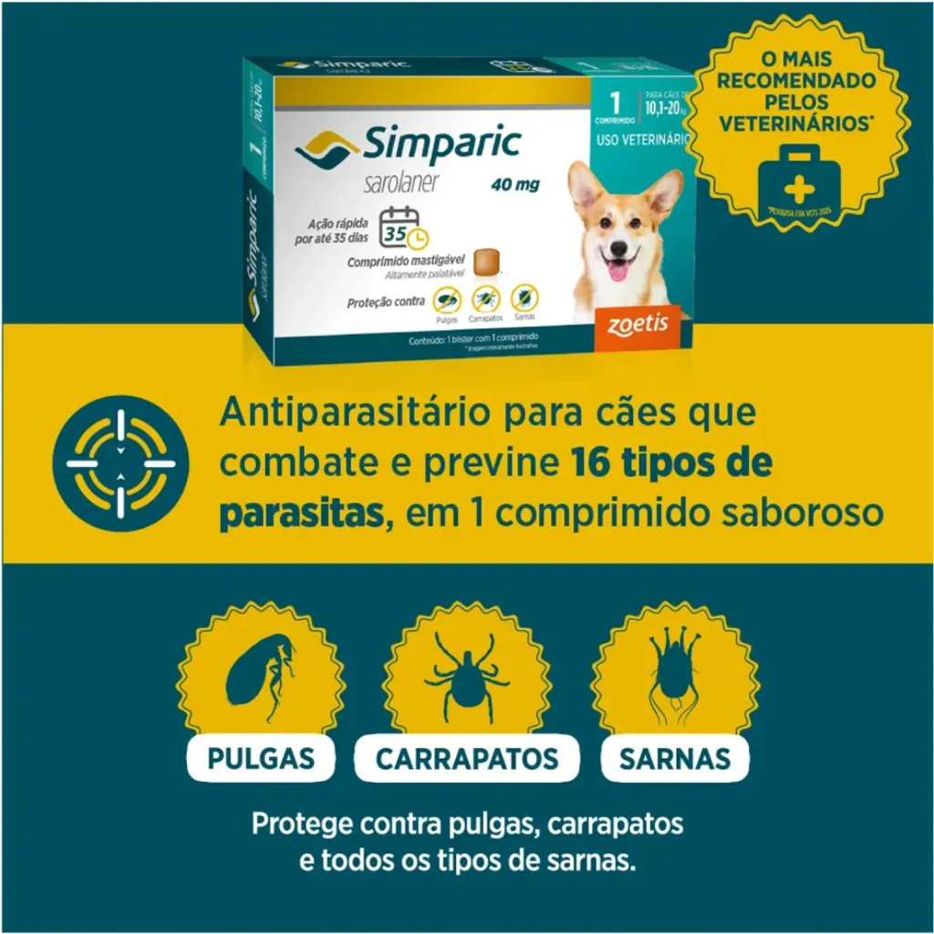 Kit 3 Caixas Simparic Cães De 2,6 A 5 kg Antipulgas Carrapatos Sarnas 1 Comprimido VENC ABR26