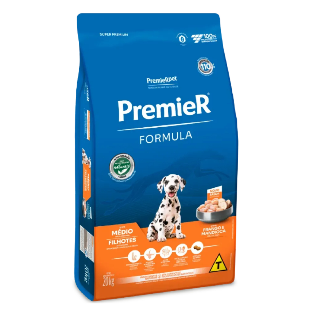 Ração Premier Formula Cães Filhotes Raças Médias Frango 20 kg
