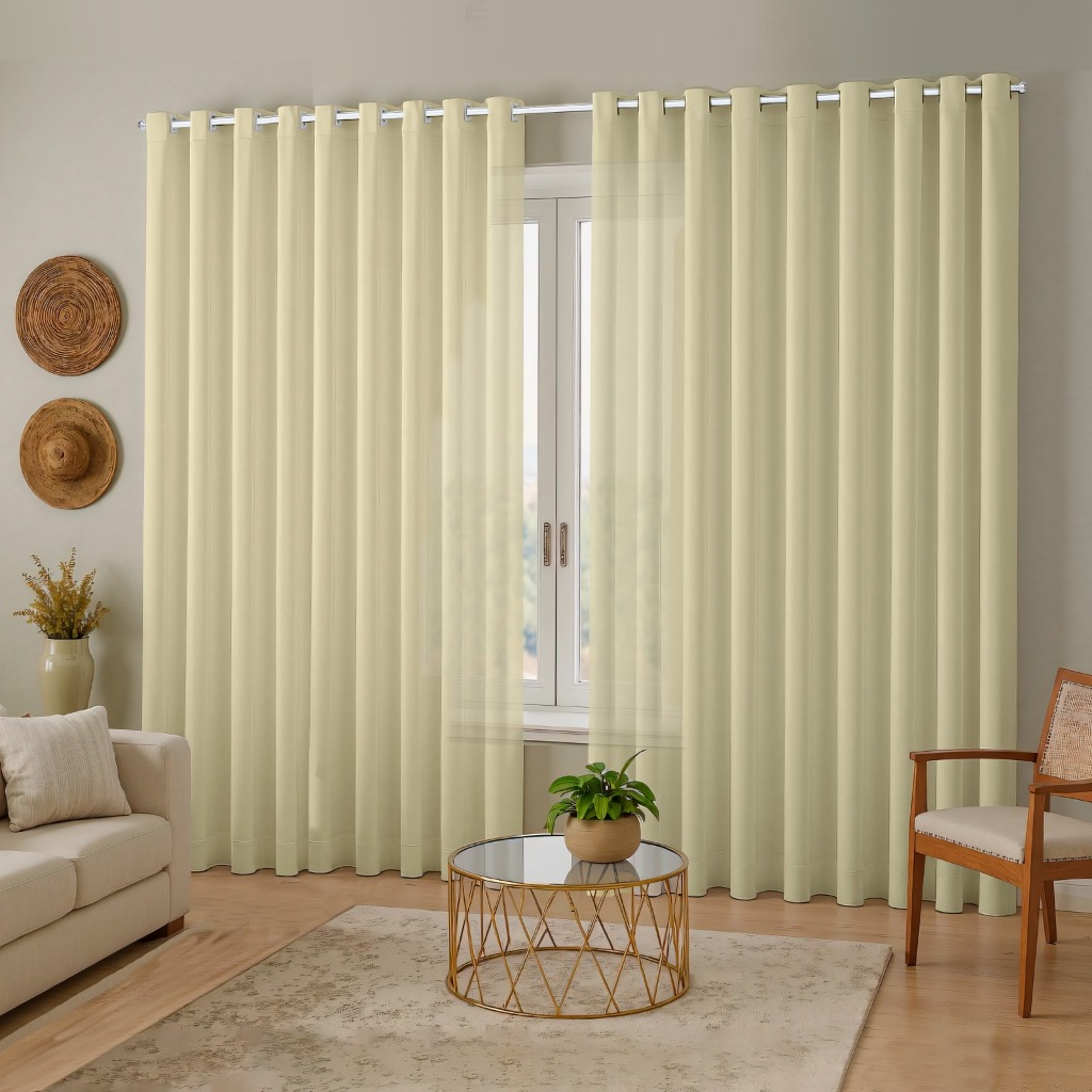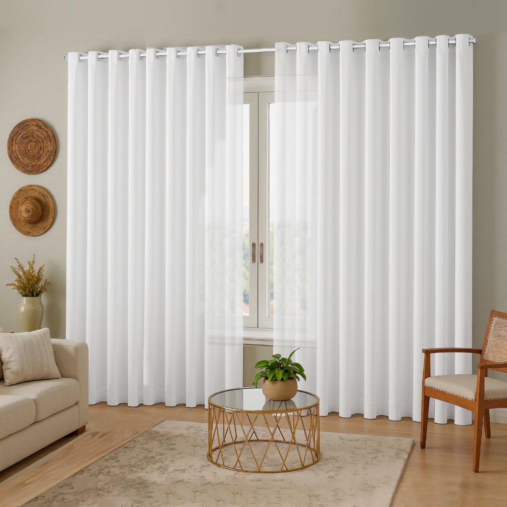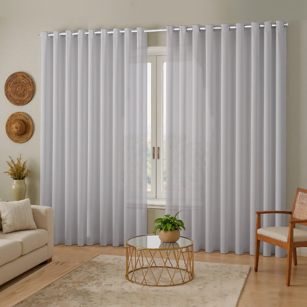 Cortina Para Varão 3,00 Largura Voil Liso e Forro Microfibra - Alturas e Cores Variadas