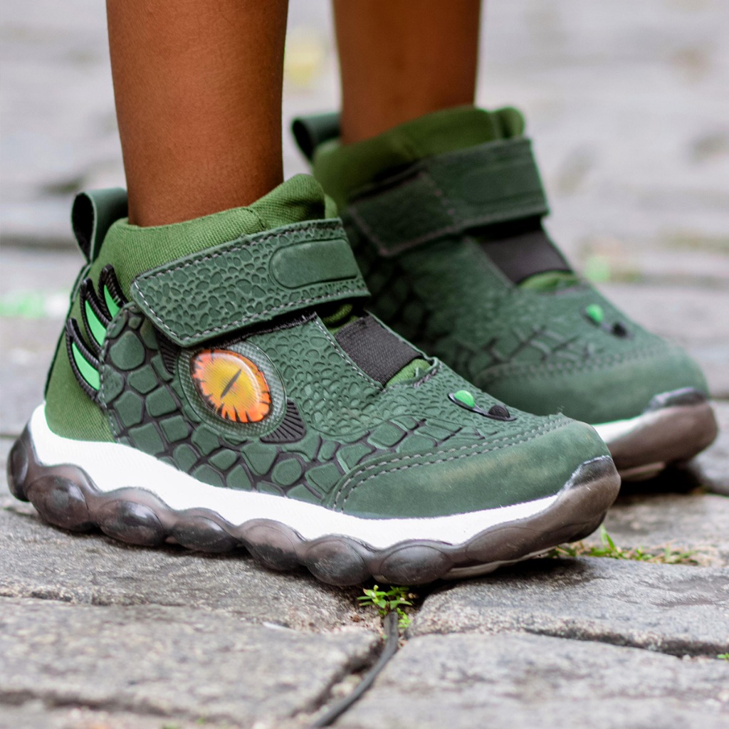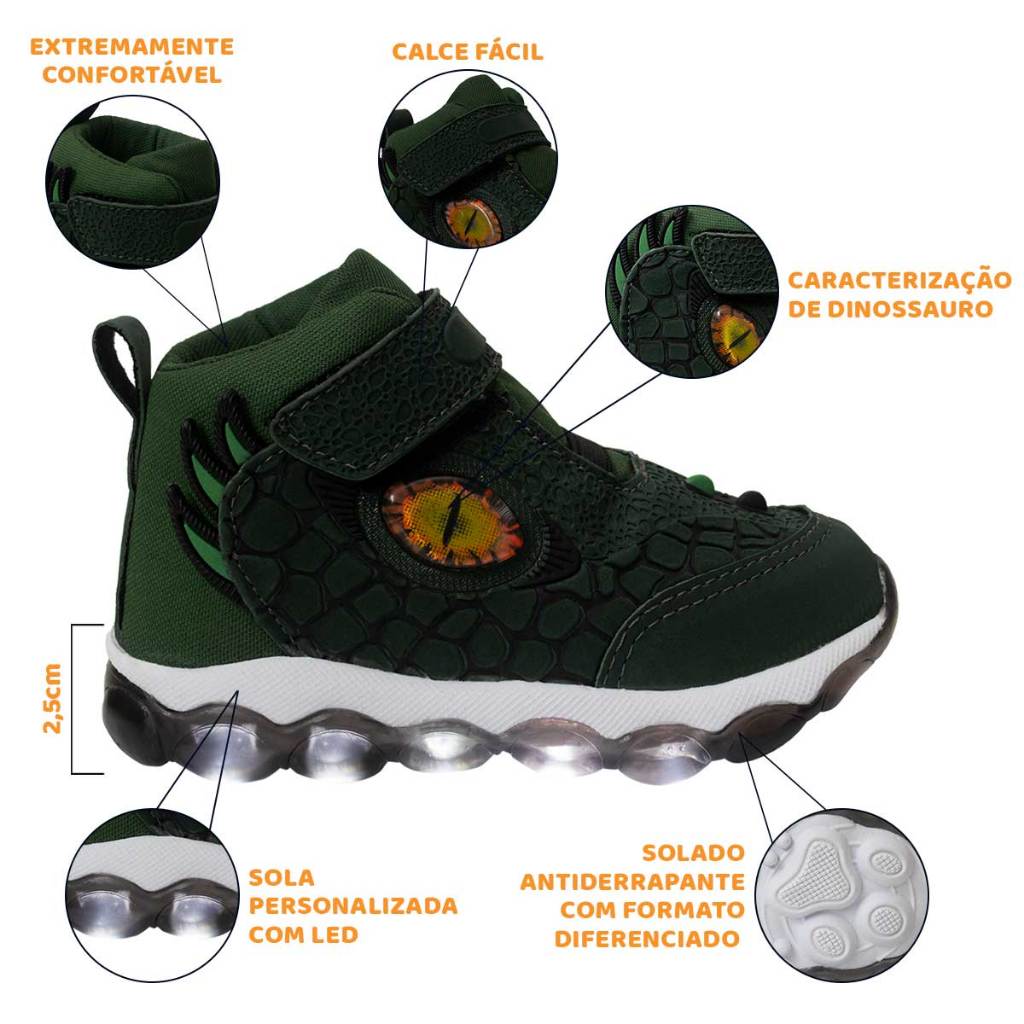 Tenis Dinossauro Infantil Nº 20 ao 30 Masculino Menino Botinha Calce Facil Moda Led 11.123