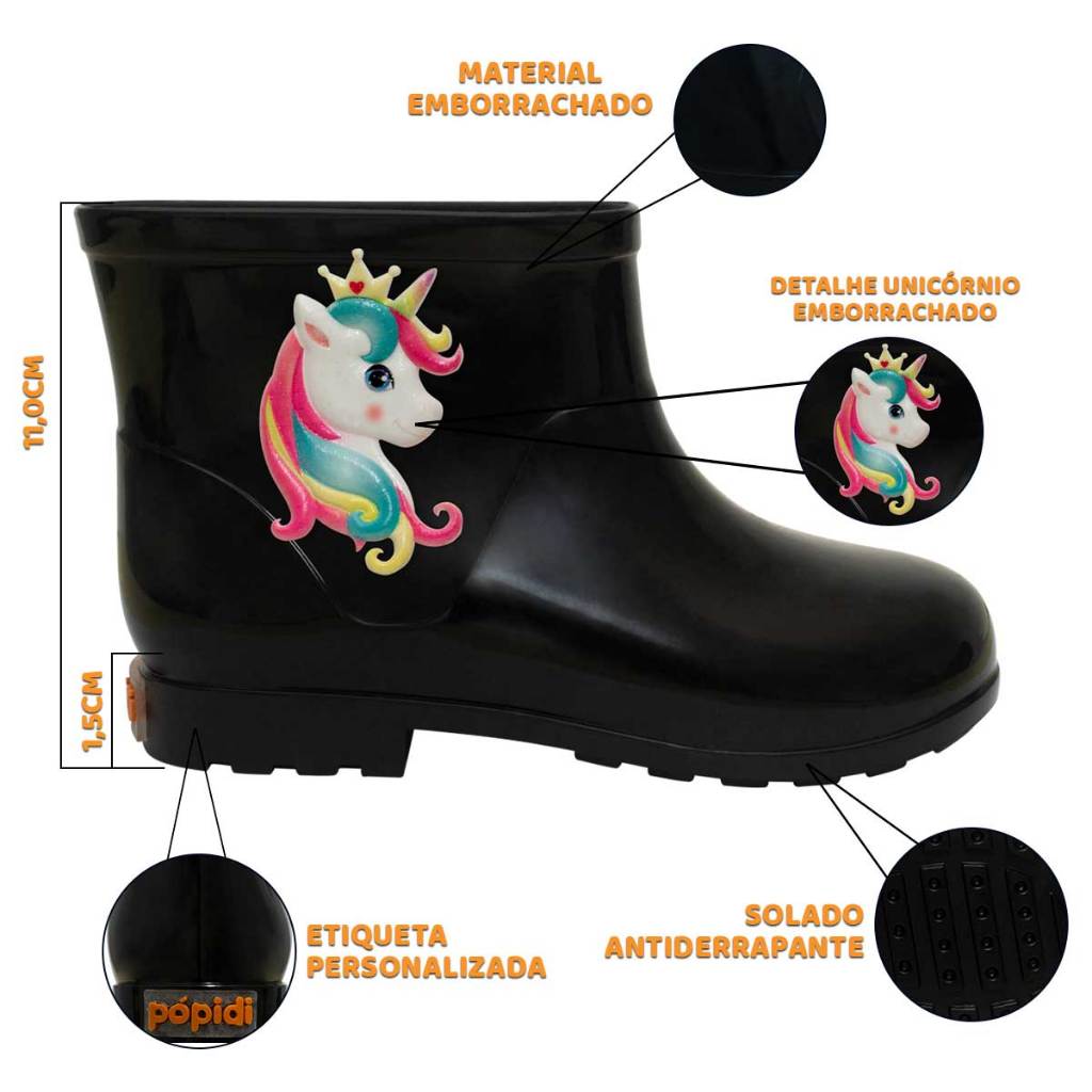 Bota Infantil Galocha Feminina 21ao26 Botinha Menina Unicórnio 09.40
