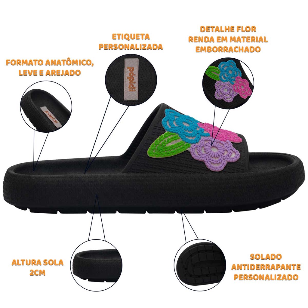 Chinelo Estilo Nuvem Moda Infantil Feminino Menina N° 25 ao 40 Slide Flor Renda Tricot 12.77