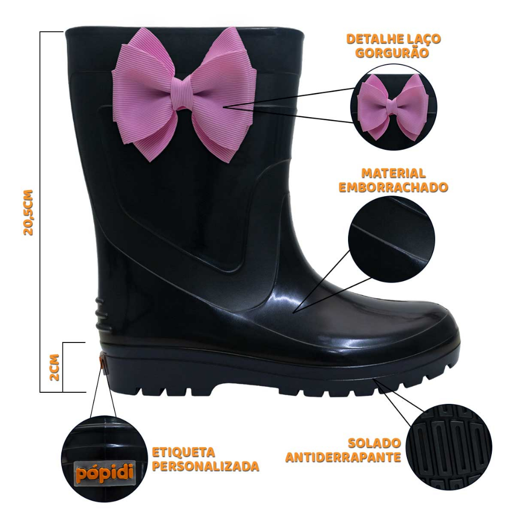 Galocha Infantil Menina Impermeável Nº 25 Ao 32 Bota Feminina Laço 09.21