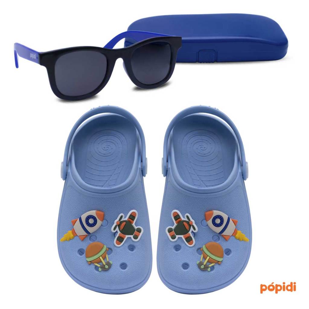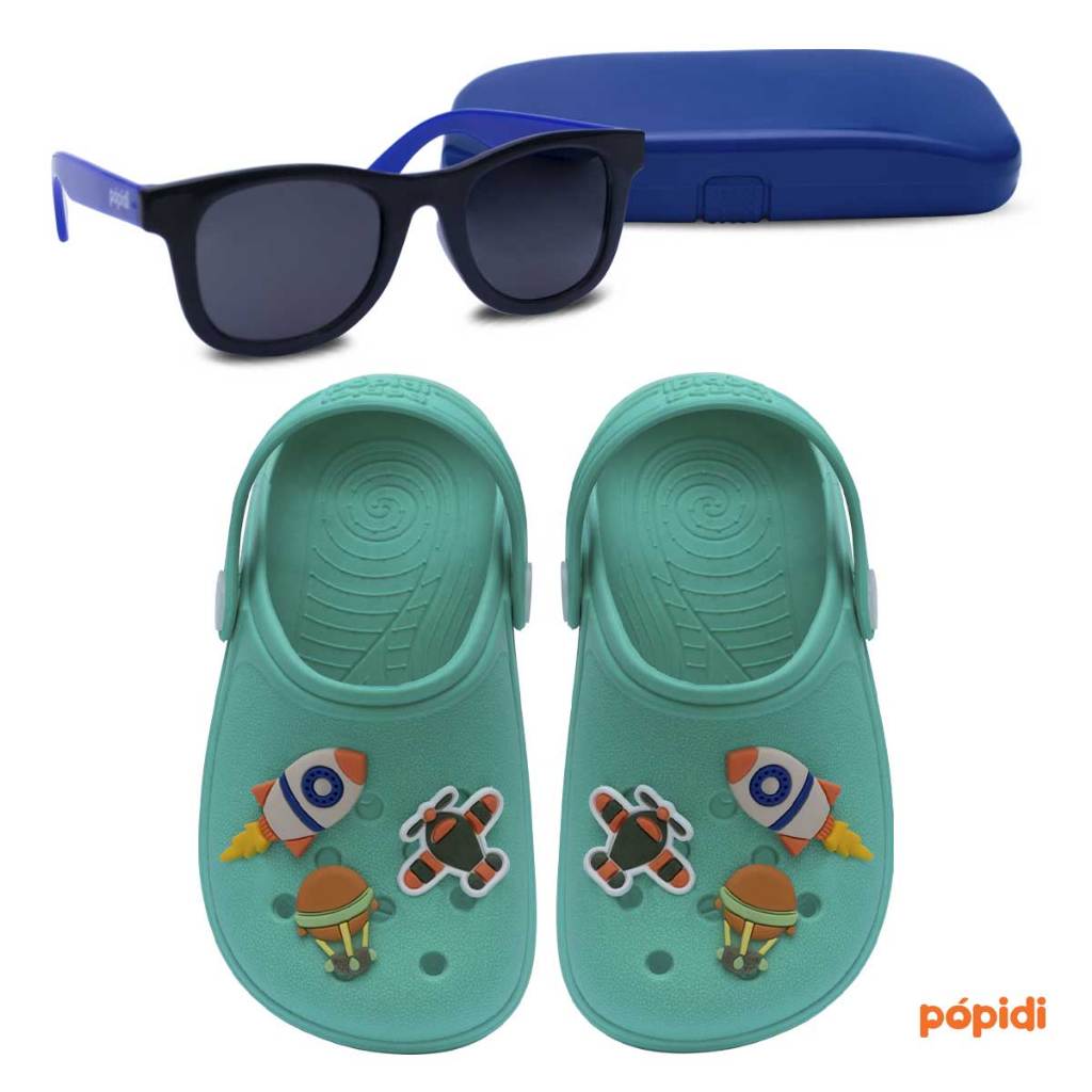 Kit Sandália Babuche E Óculos de Sol Infantil Menino Chinelo Calce Fácil Leve Macio Masculino 12.18 14.01