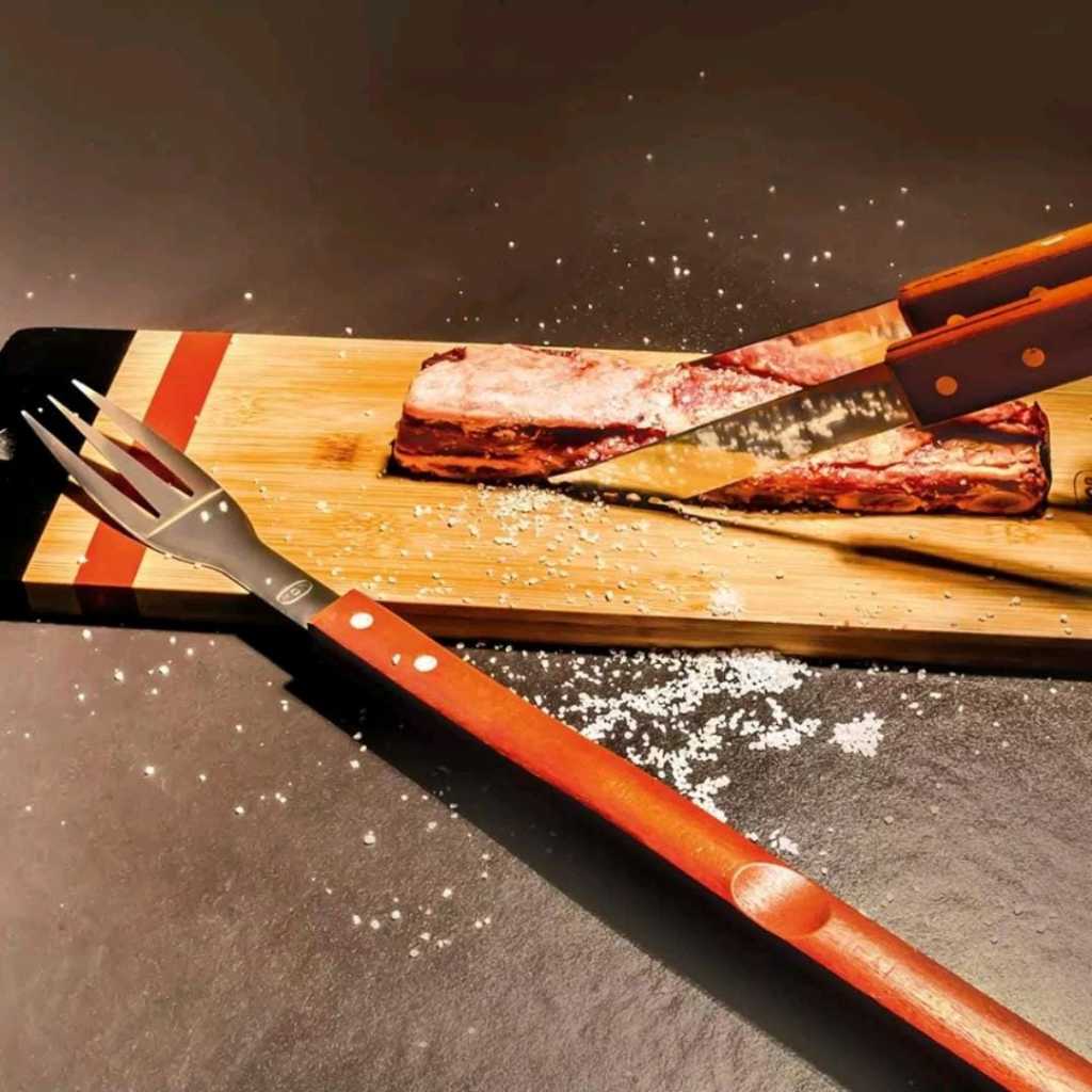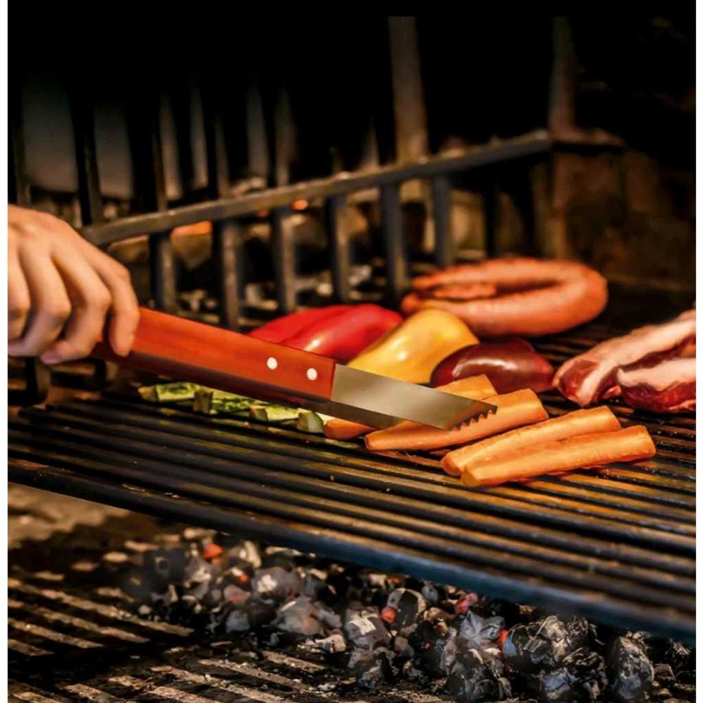Pegador Longo Churrasco Carne Aço Inox Cabo Madeira Mor