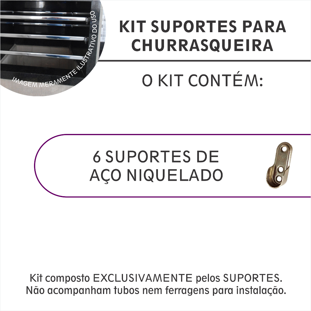 Kit 6 Suporte Cromado Para Tubo Churrasqueira