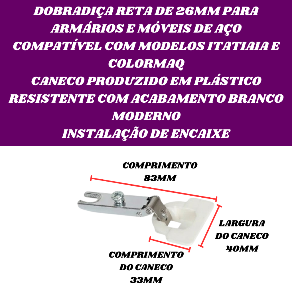 Kit 4 Dobradiça Reta Caneco Plástico Itatiaia Colormaq Armário De Aço