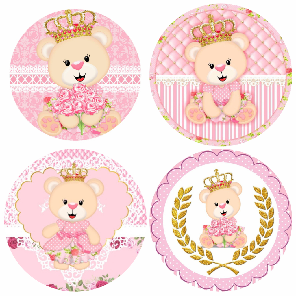 Adesivos etiquetas menina chá de bebê ursinha princesa 96 unidades