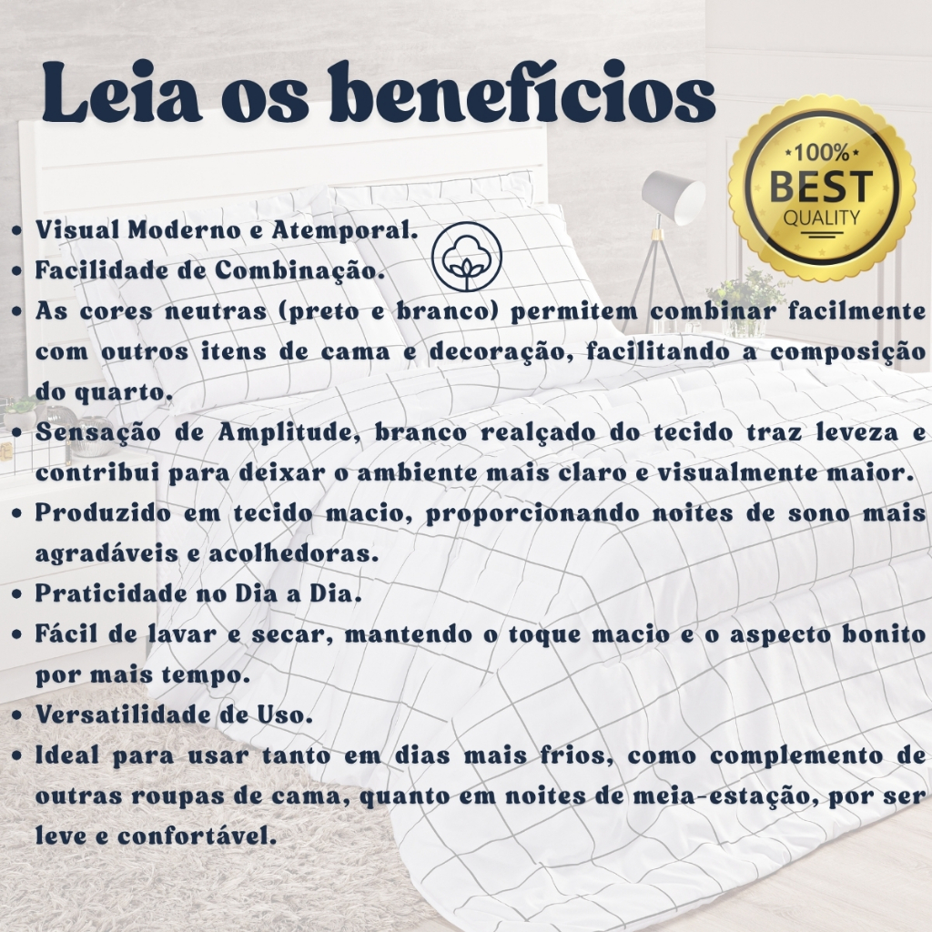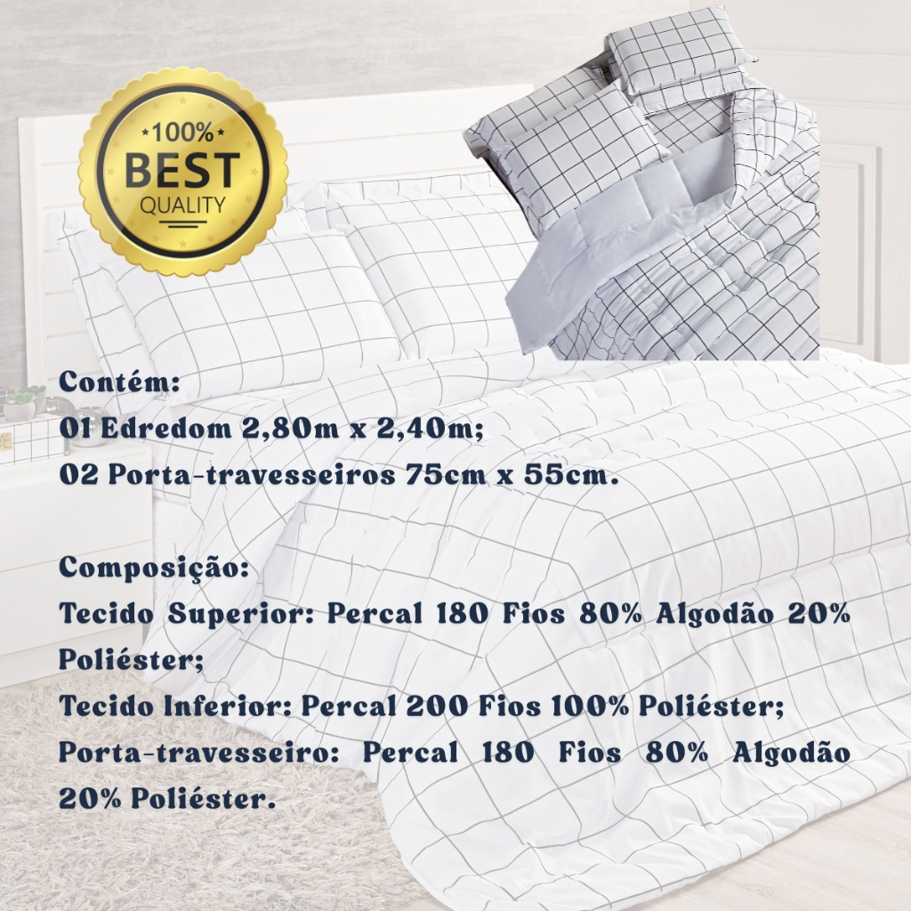 Edredom de Algodão Solteiro Queen King Atual Quadriculado Cheio Firme Moderno