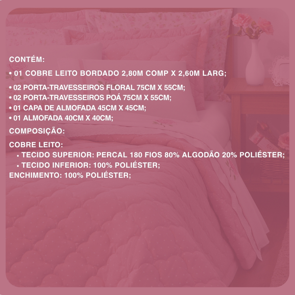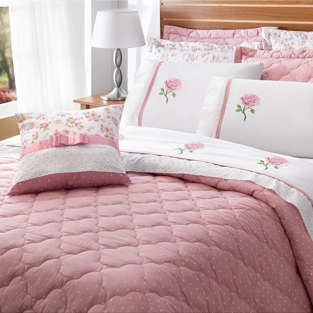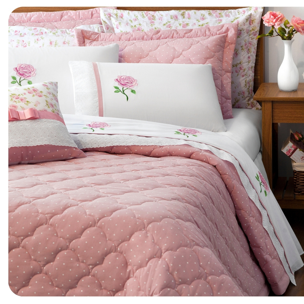 Kit Colcha Queen ou King 07 Peças Percal 180 Fios Matelado Rosê Athena
