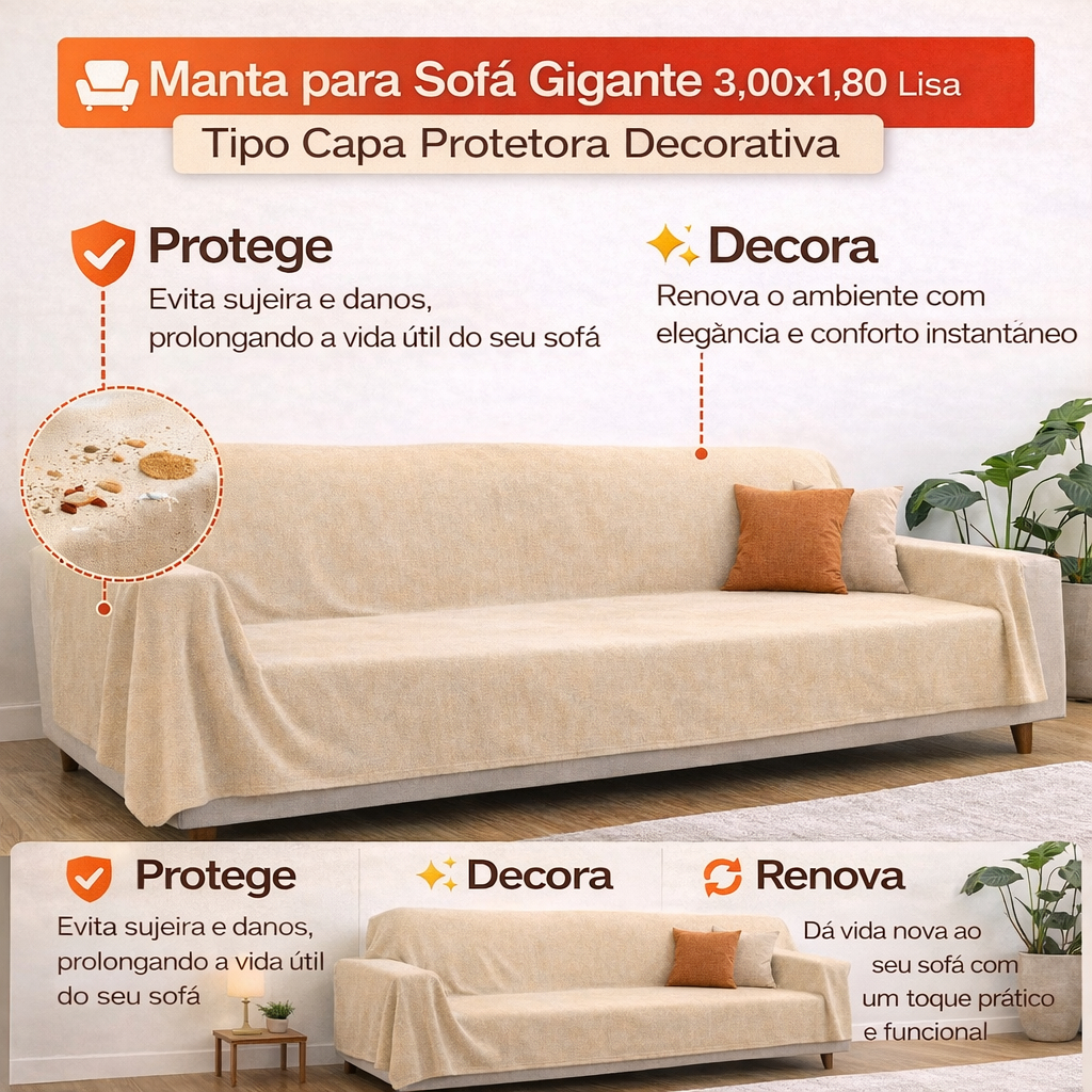 Manta 3,00 x 1,80M Para Sofá King Luxo Gigante 100% Algodão Protetor Decoração