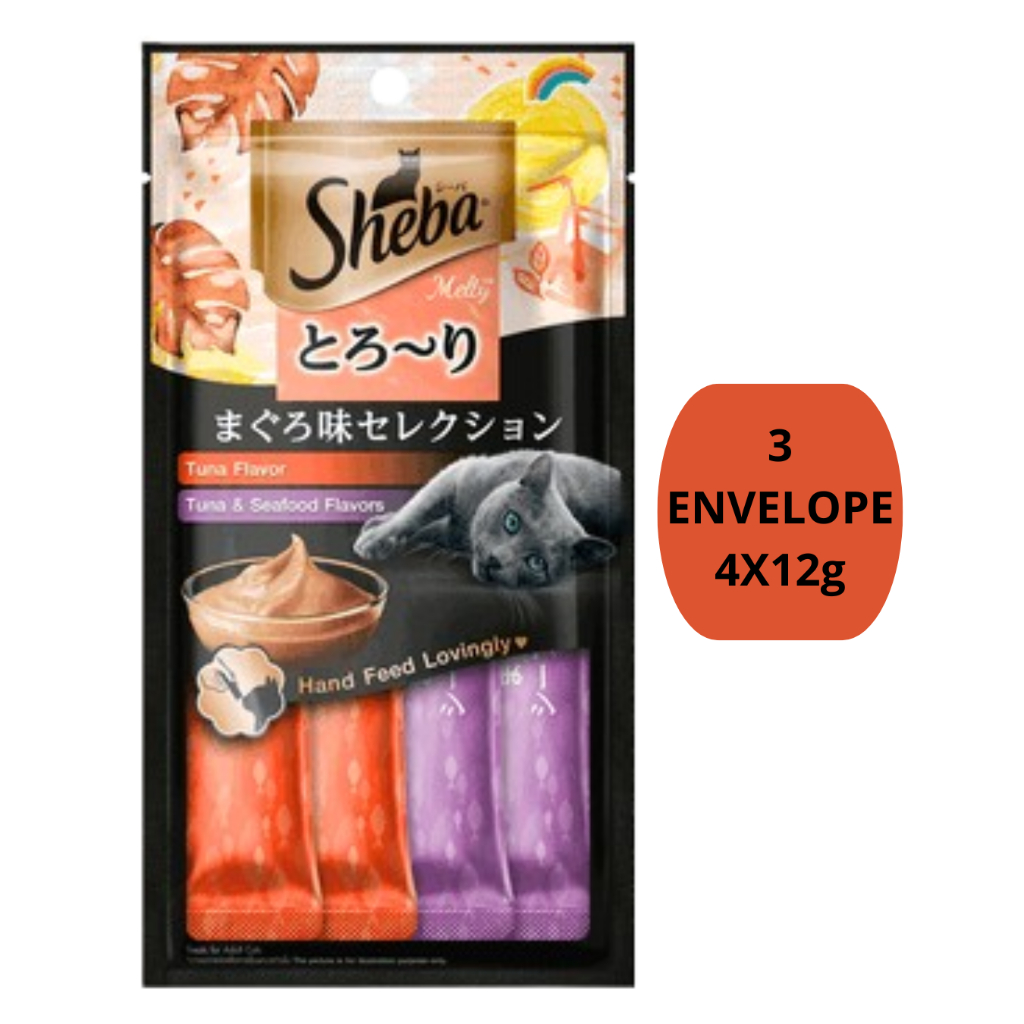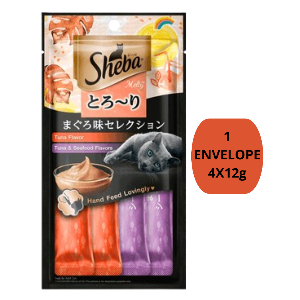 Petisco Cremoso Sheba Creamy Atum / Atum e Camarão para Gatos 4 tubos de 12g