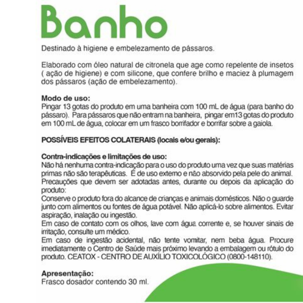 Seta Banho 30ml Suplemento Vitaminico Para Todas As Aves
