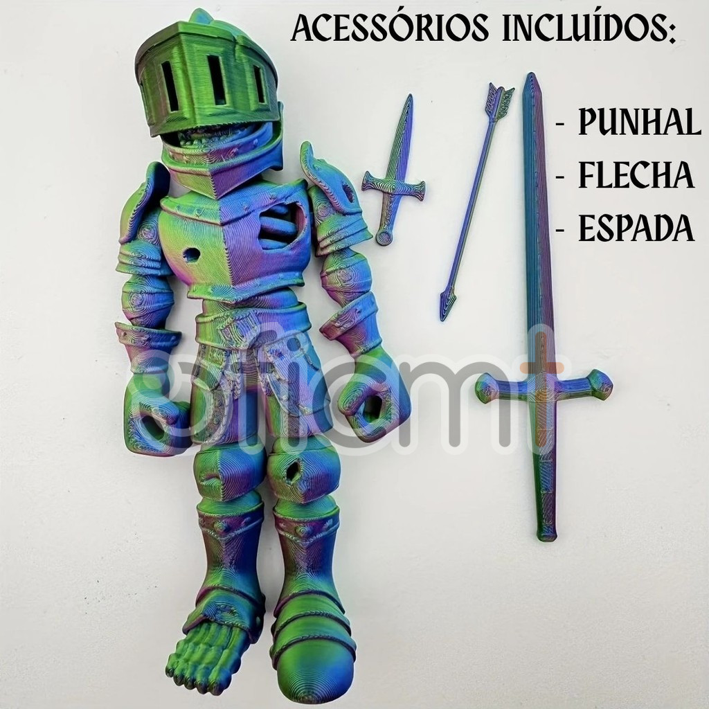 Cavaleiro Esqueleto Articulado com Espada Fidget Toy Caveira Guerreiro Soldado Zumbi Anime Flexível
