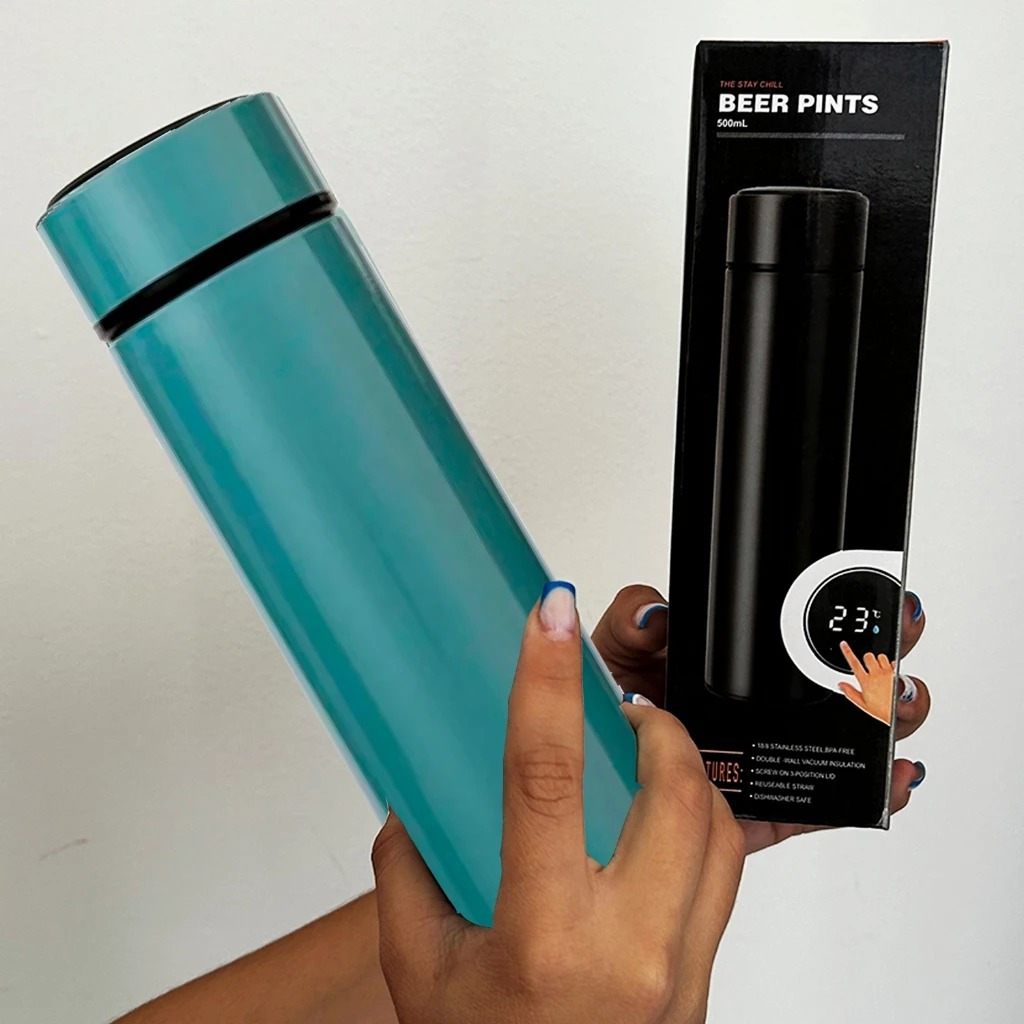 Garrafa Térmica Aço Inox Portátil 500ml Infantil com Termometro e Visor LED Temperatura