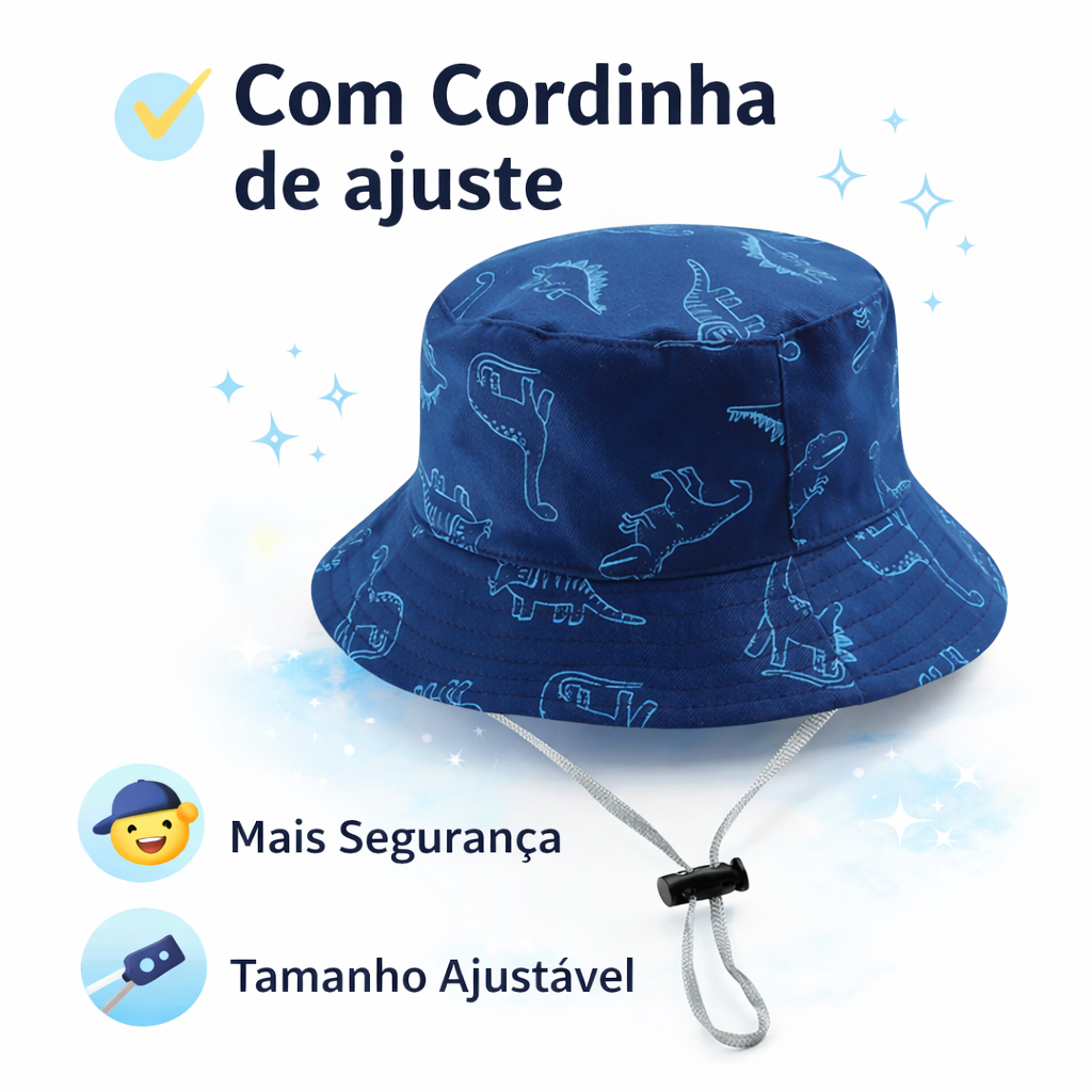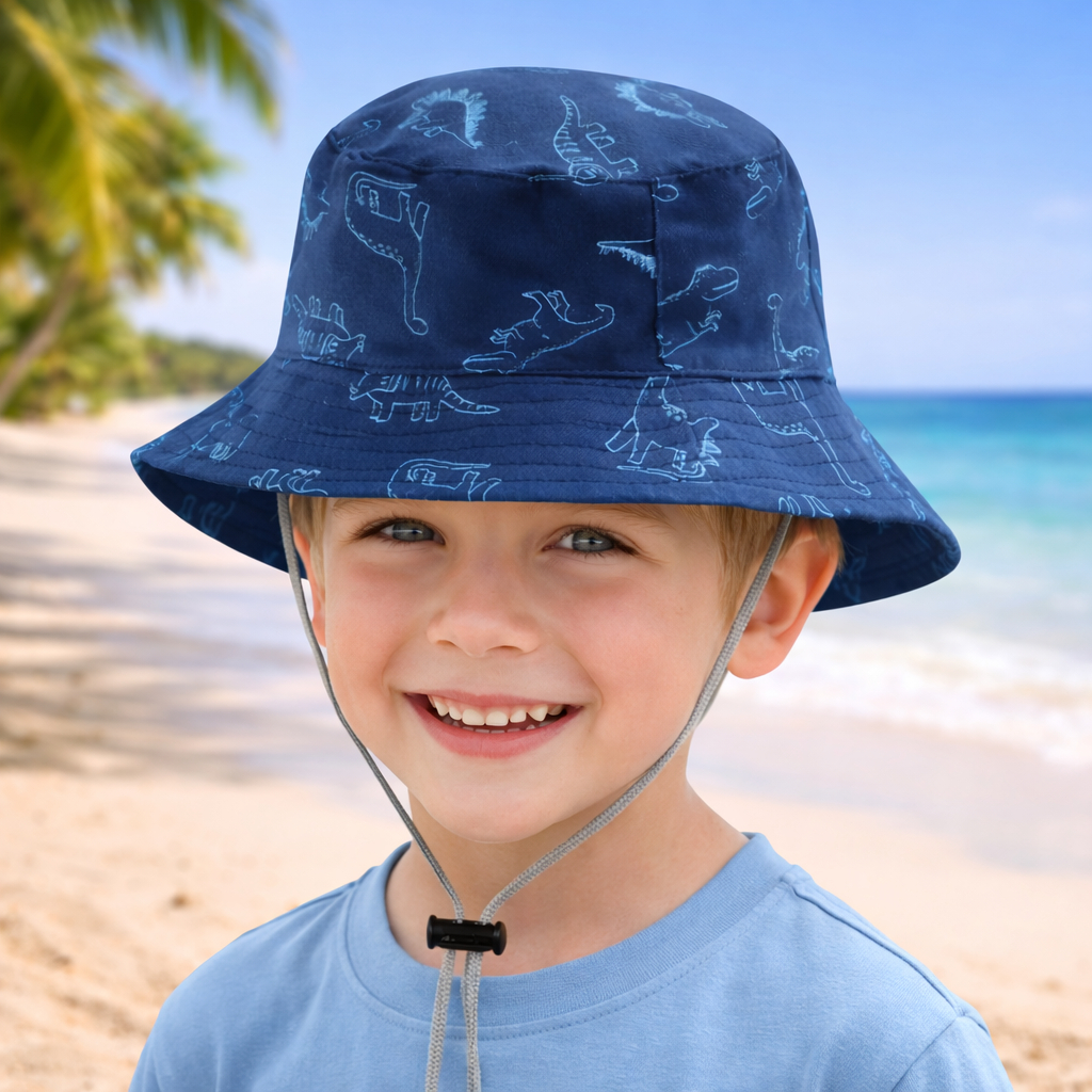 Chapéu de Dinossauro praia Infantil UV Bucket Infantil Menino Chapéu de praia masculino com Cordinha
