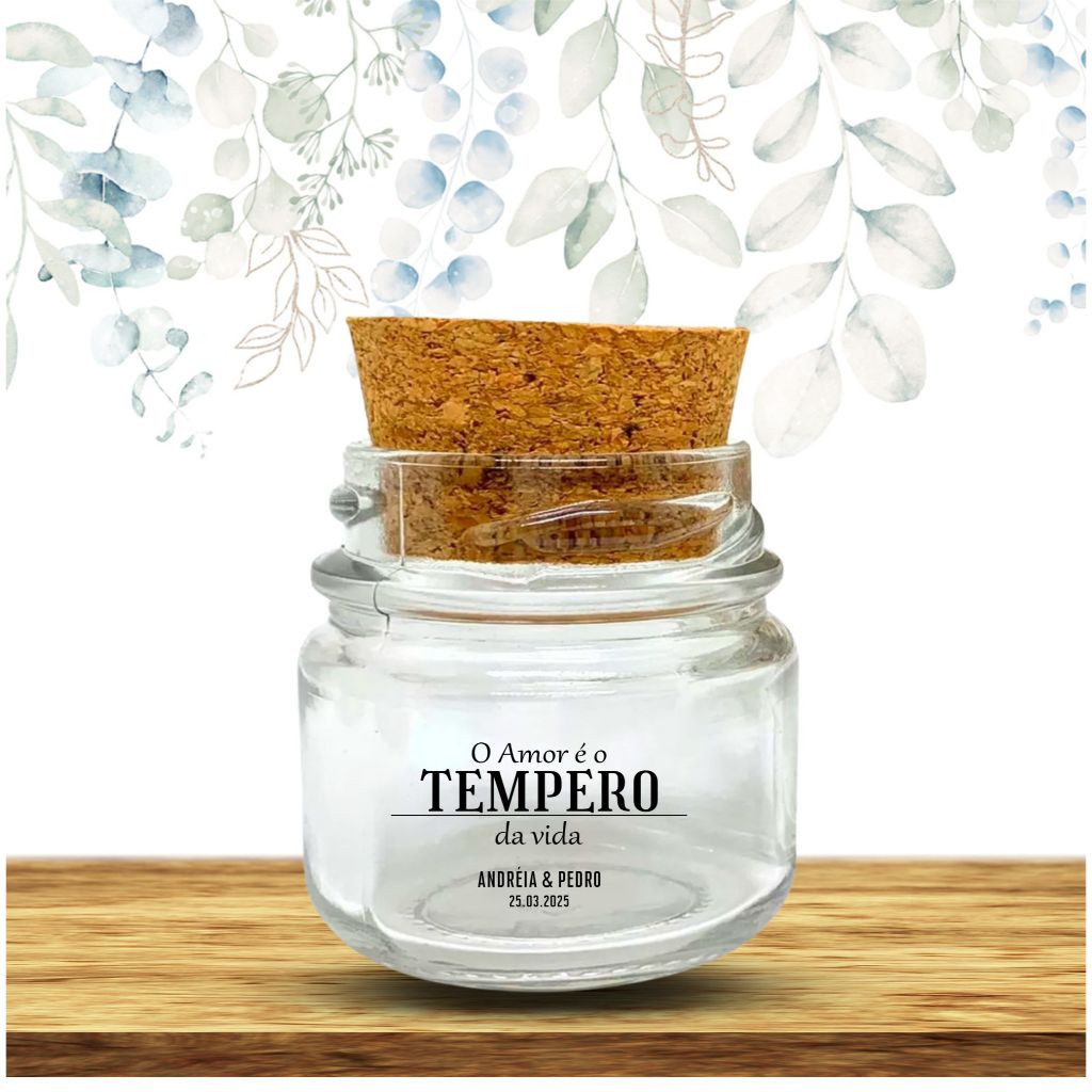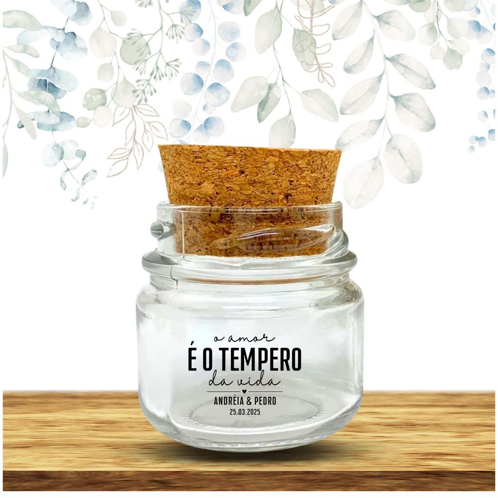 Adesivo etiqueta transparente - 3x2cm - O AMOR É O TEMPERO DA VIDA - para pote de 40 ml