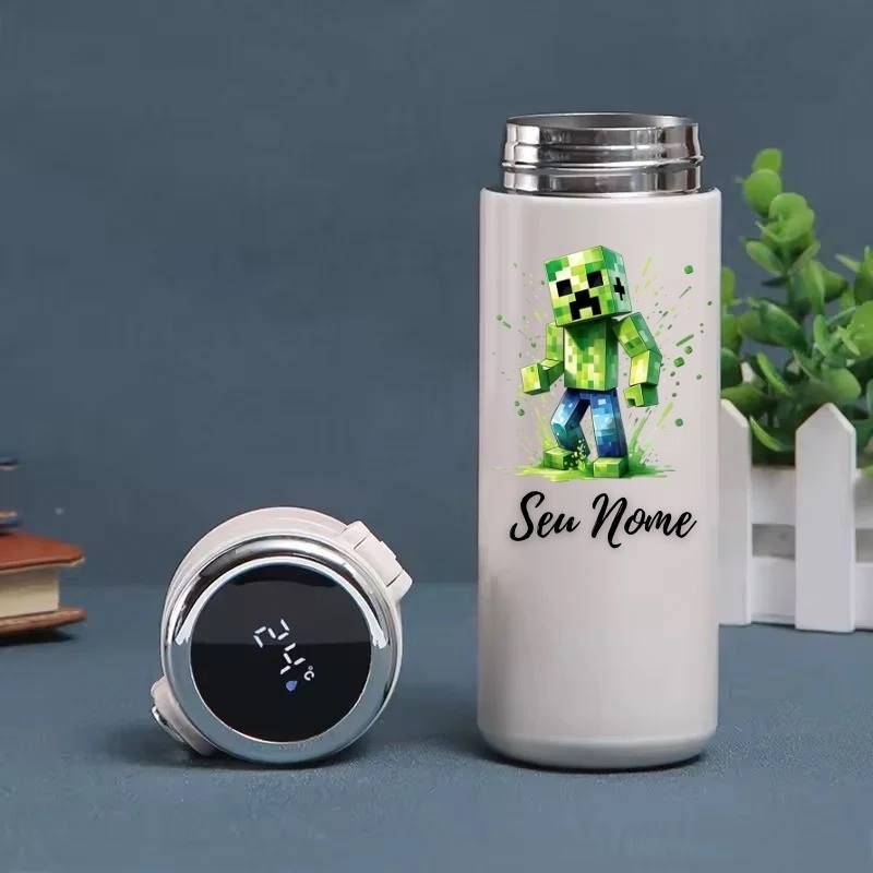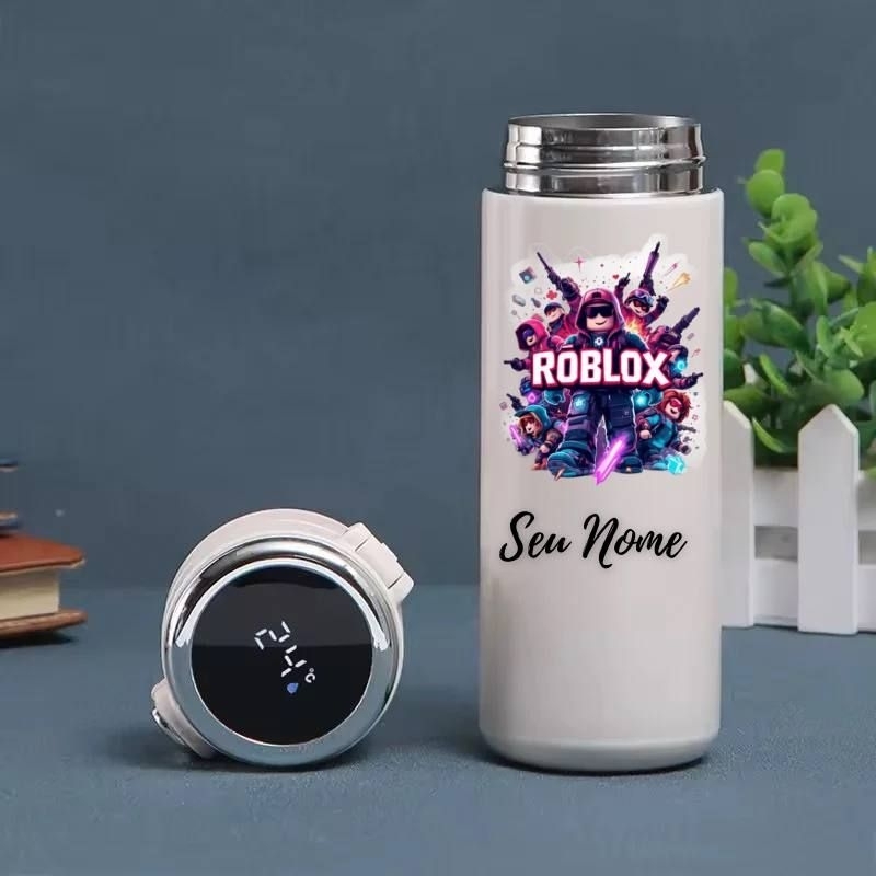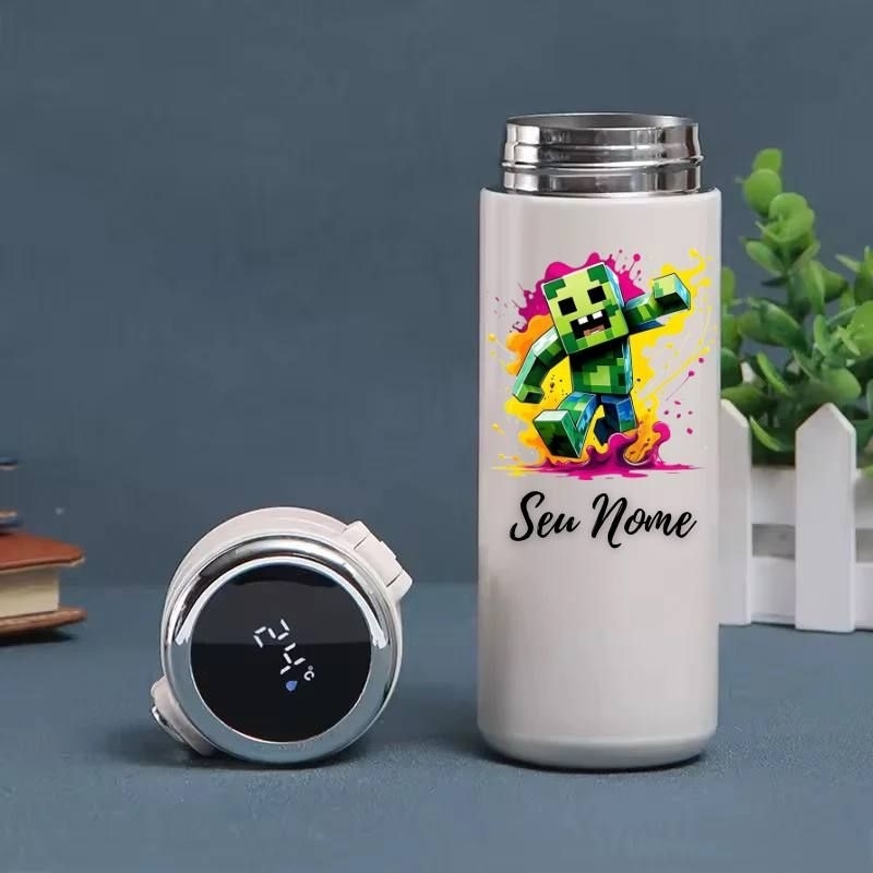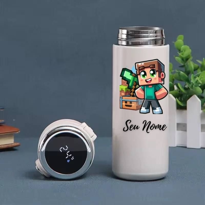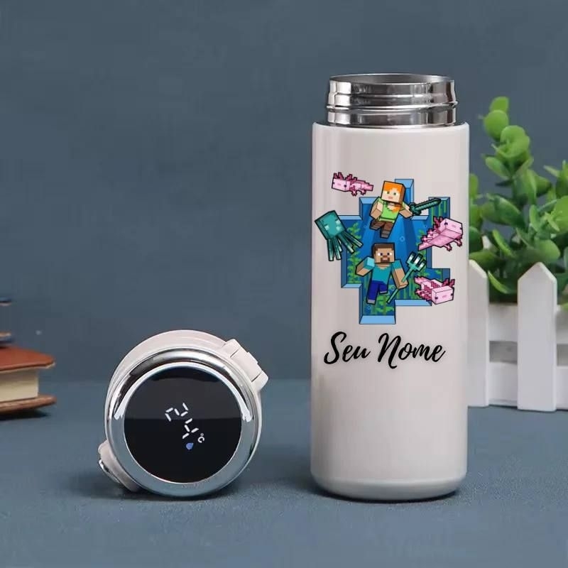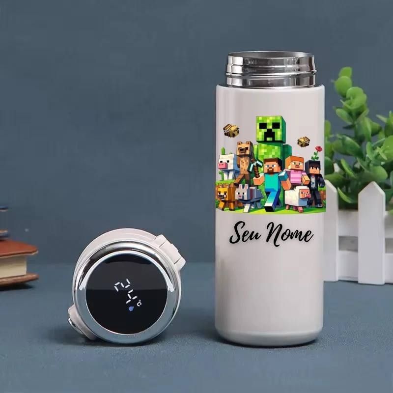 Garrafa Térmica Infantil Roblox e Minecraft Personalizada com Nome – Display Digital LED 420ml Inox