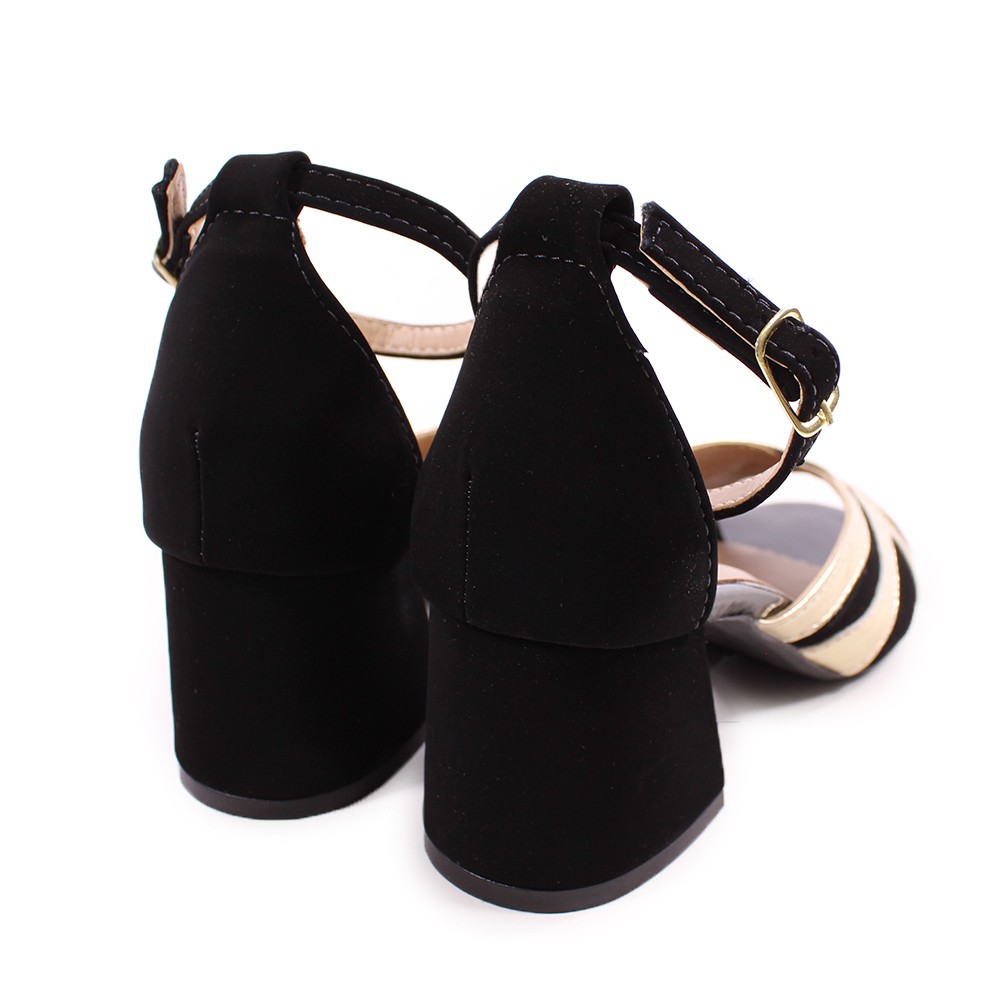 Sandália feminina Nobuck preto com detalhes Metalizado Ouro