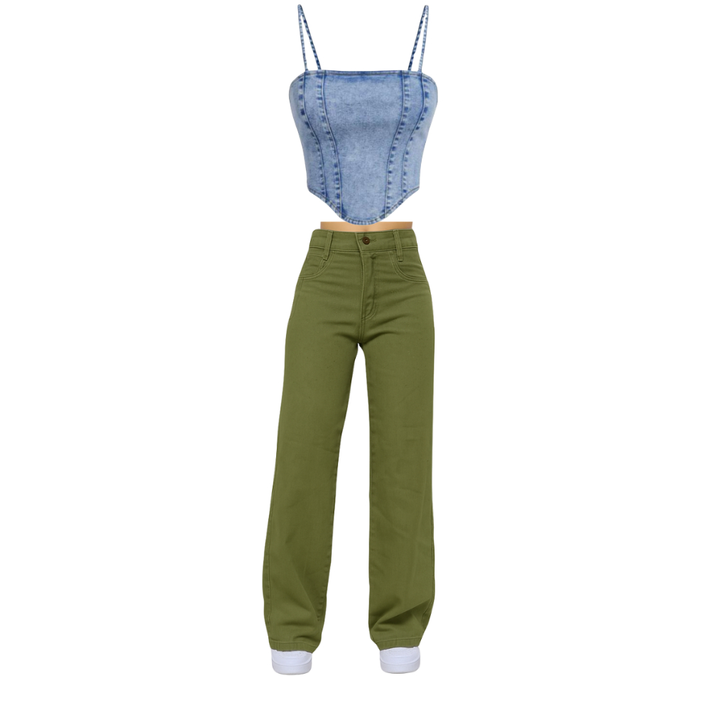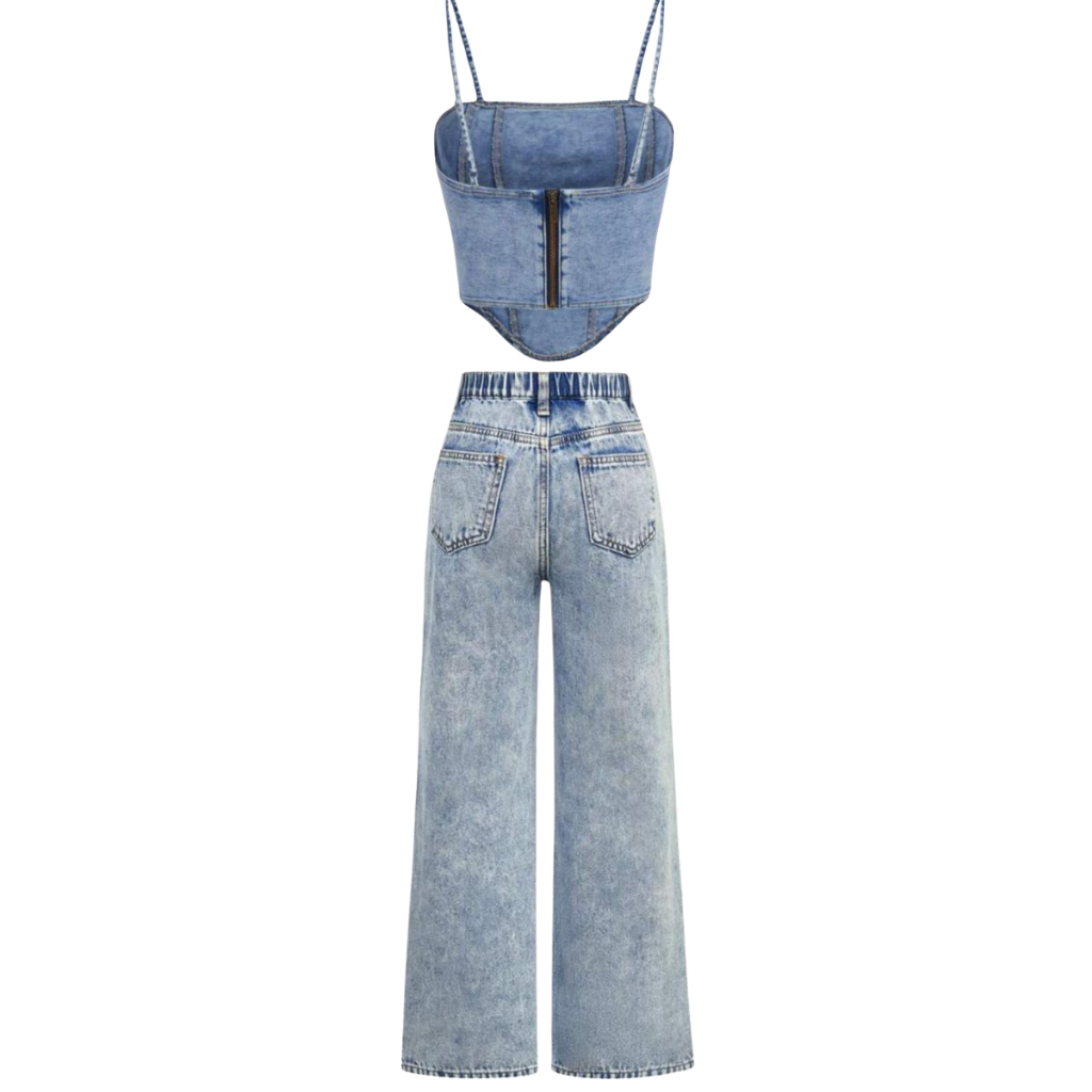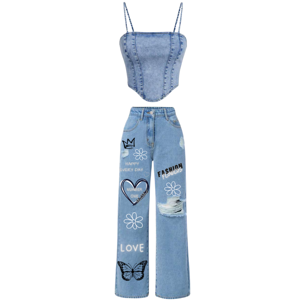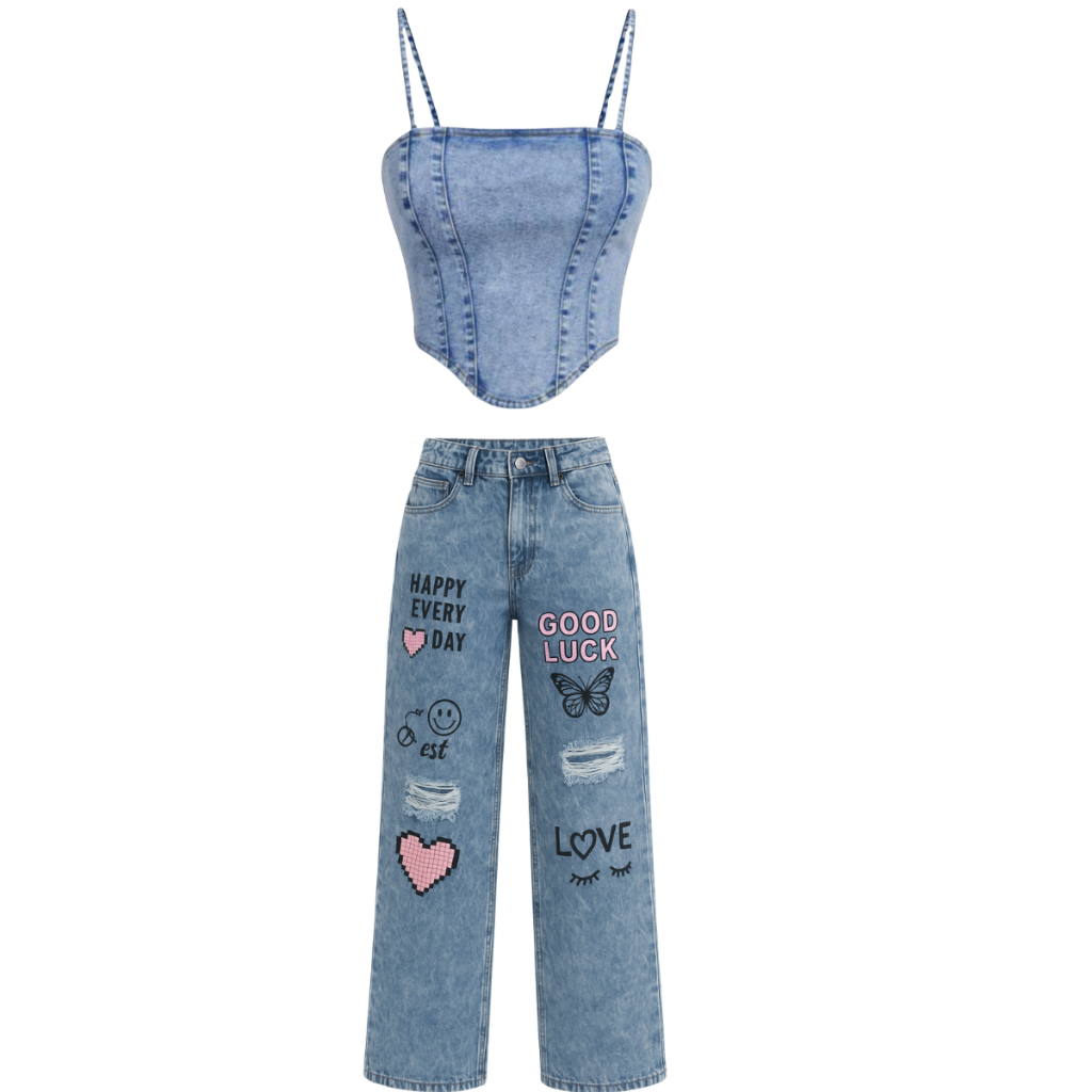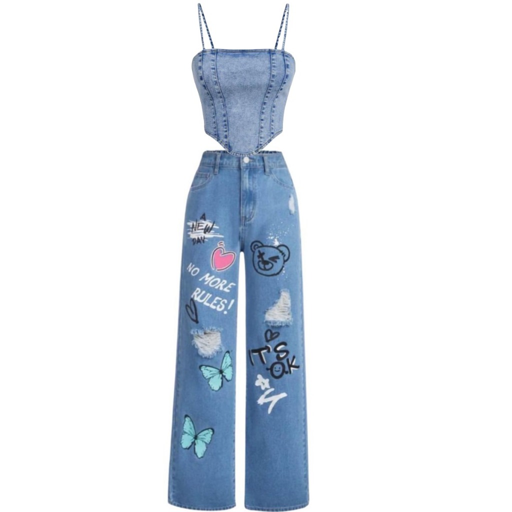 Conjunto Jeans infantil juvenil menina calça wide leg + cropped jeans