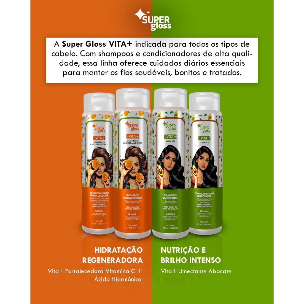 Kit Shampoo e Condicionador Vita+ Abacate Super Gloss 2x300ml Magic Color Umectação Nutrição Brilho