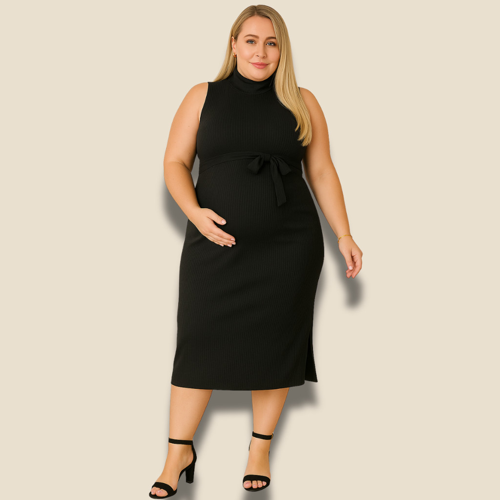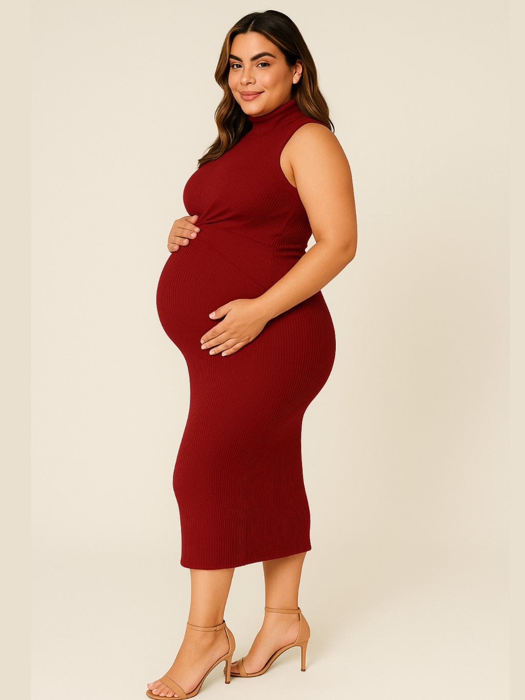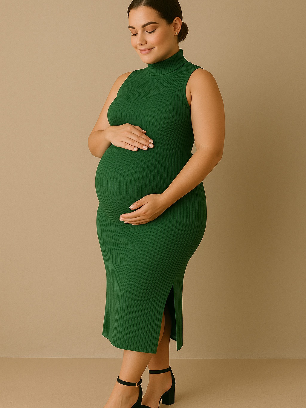 Vestido Plus Size Regata Gestante Canelado para Maternidade Longo Midi Moda Feminina para Gestantes,Gravidez