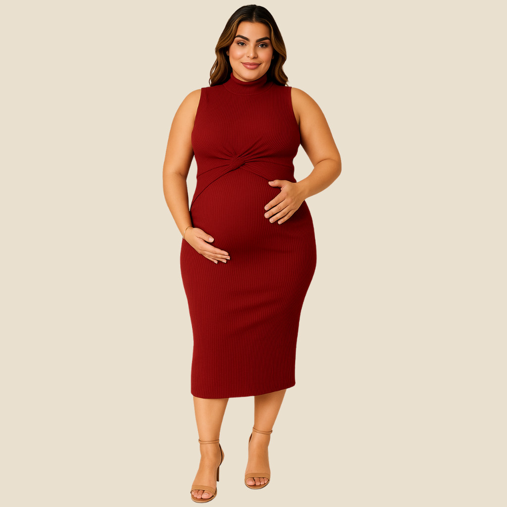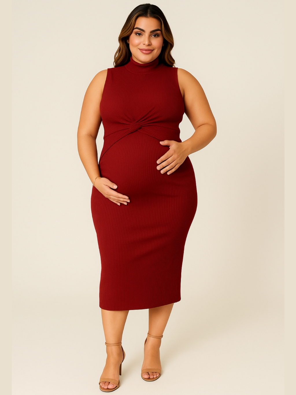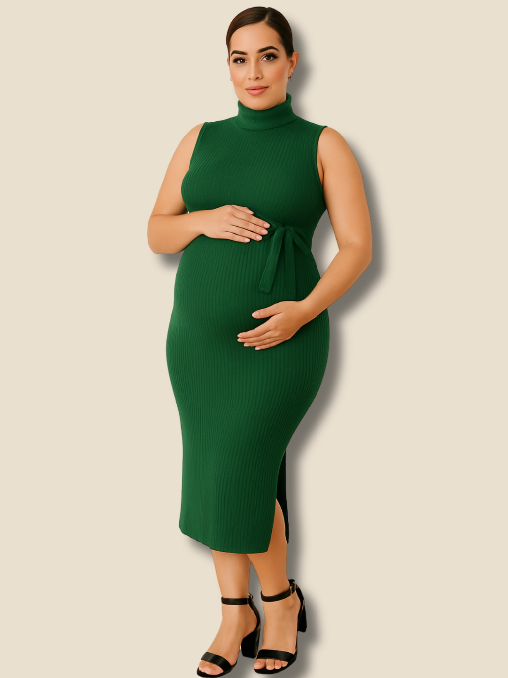 Vestido Plus Size Regata Gestante Canelado para Maternidade Longo Midi Moda Feminina para Gestantes,Gravidez