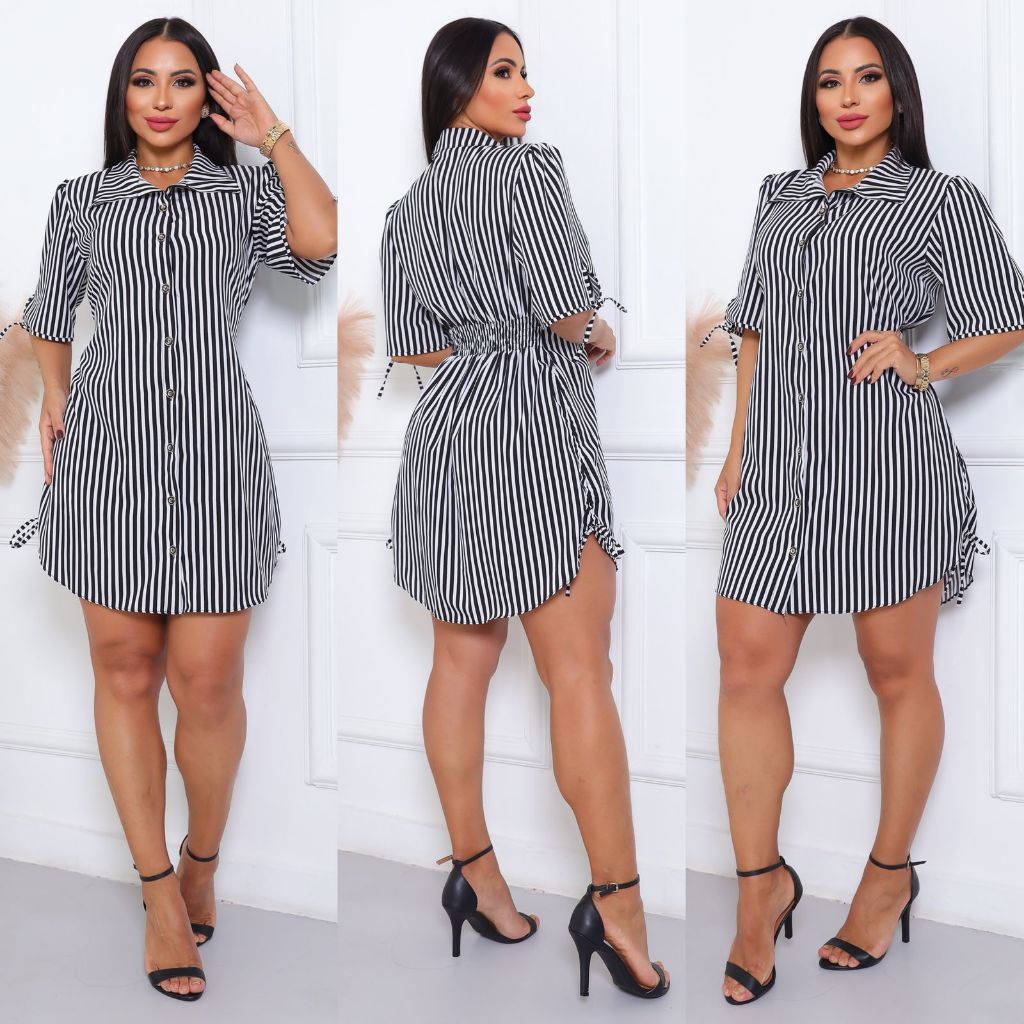 Vestido Chemise Camisa Feminino Com Ajuste Lateral e Elástico nas Costas