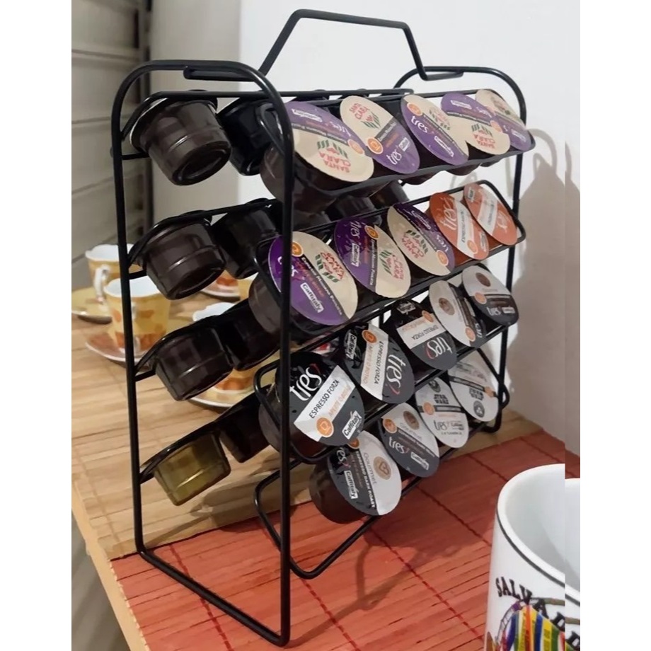 Organizador Suporte Porta 40 Capsulas 3 Corações Aramado Preto