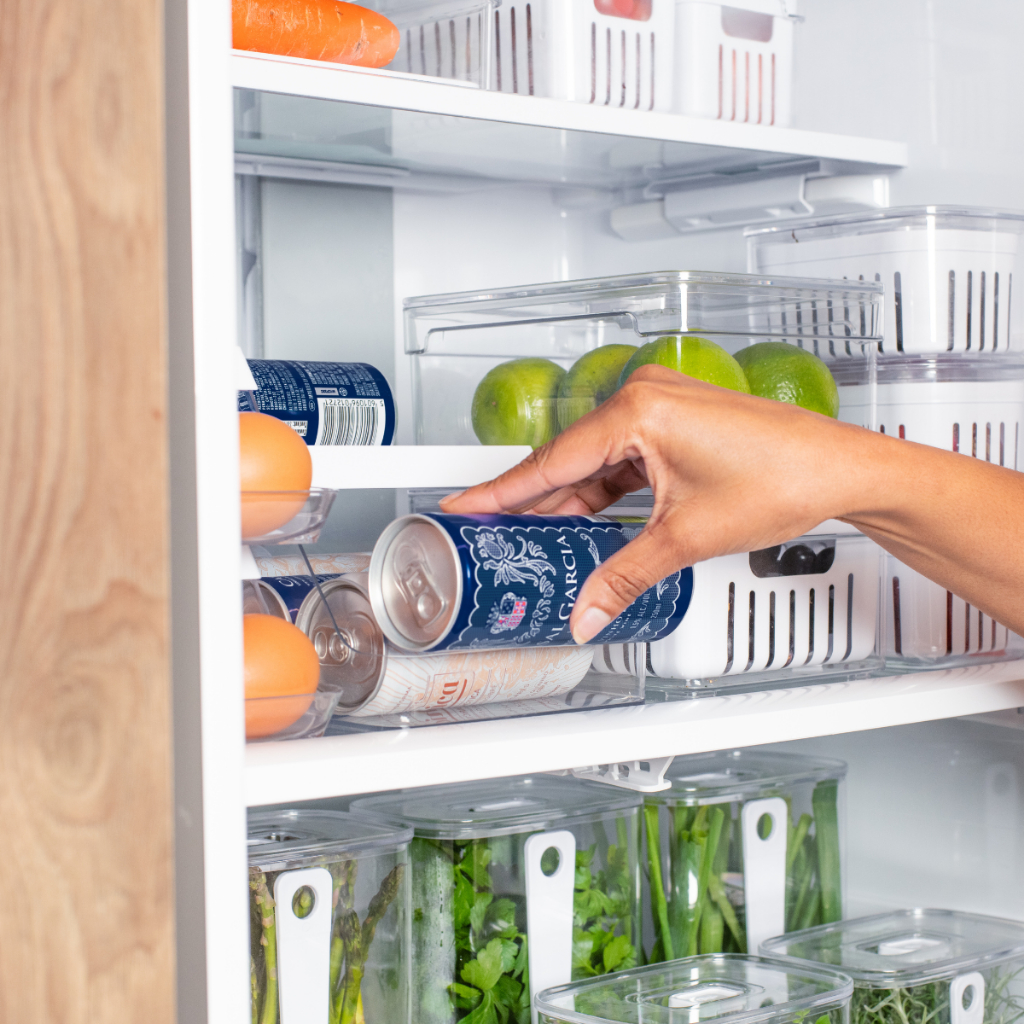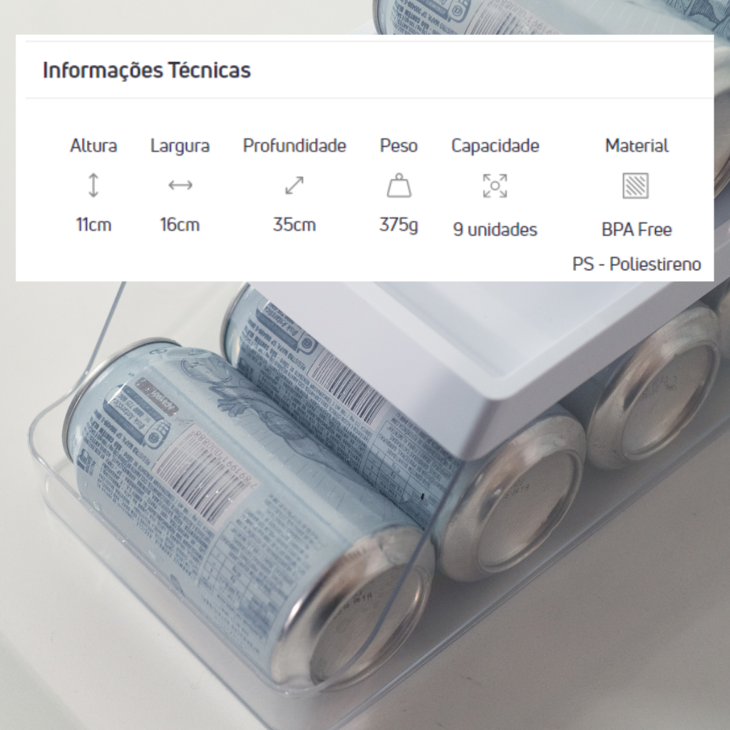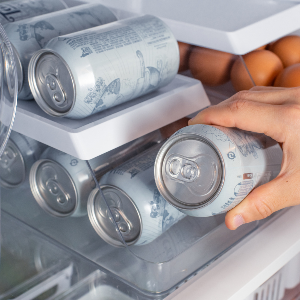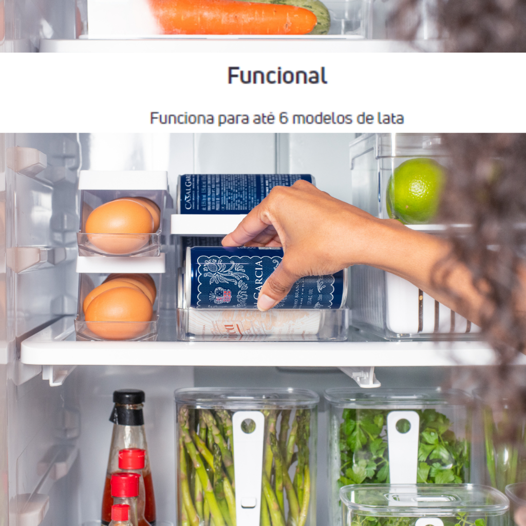 Suporte de Latas 9 unid Organizador de Geladeira Sistema Roler Clear Fresh Branco