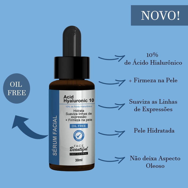 Sérum Ácido Hialurônico 10% Facial Oil Free Face Beautiful 30 ml
