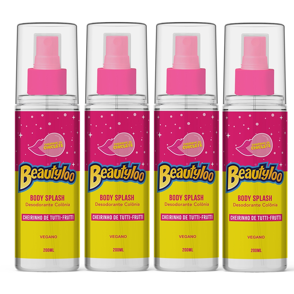 Kit 4 Body Splash Corporal Vegano Cheirinho de Chiclete Beautyloo Face Beautiful