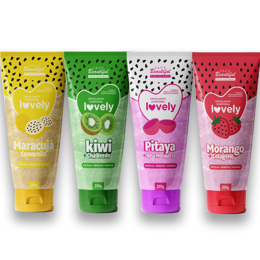 Kit Esfoliante Corporal Frutas Todos os Tipos de Pele Macia e Hidratada Lovely Face Beautiful 280g