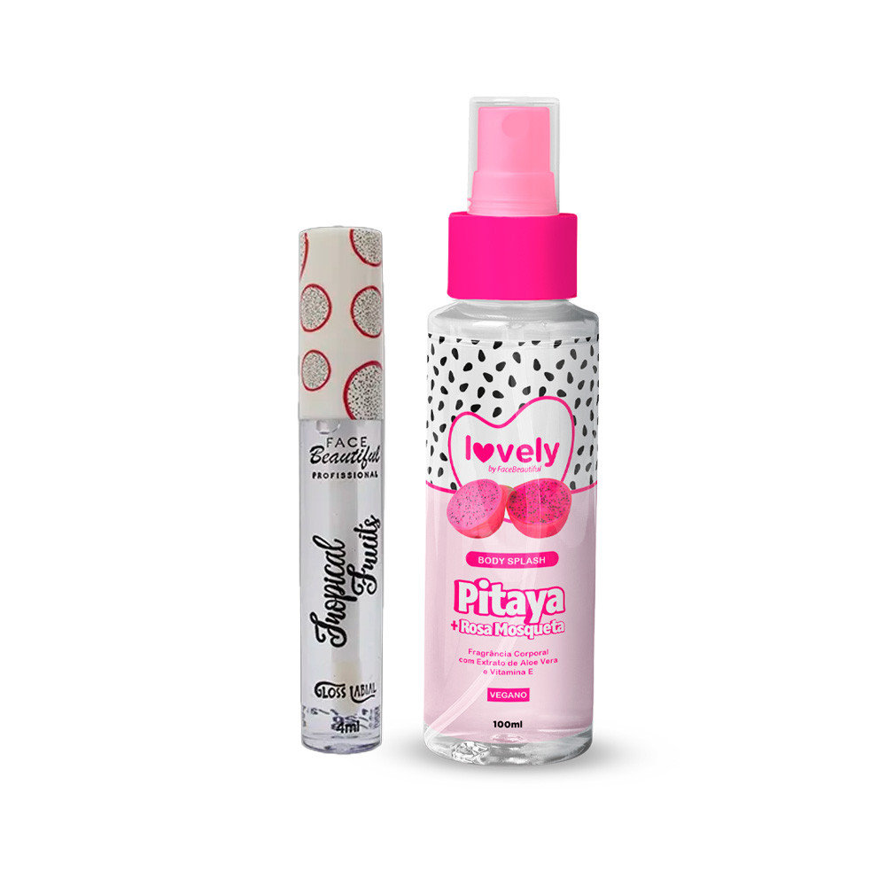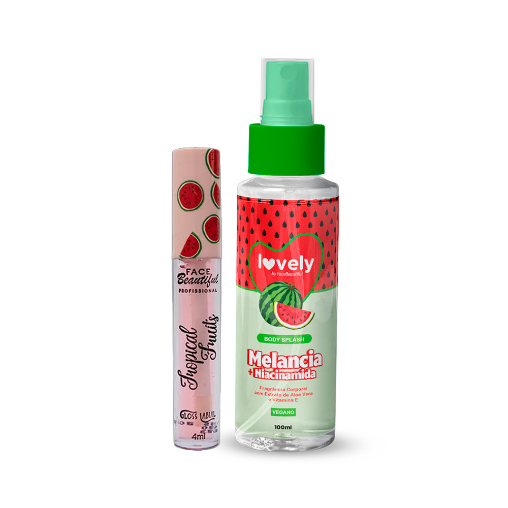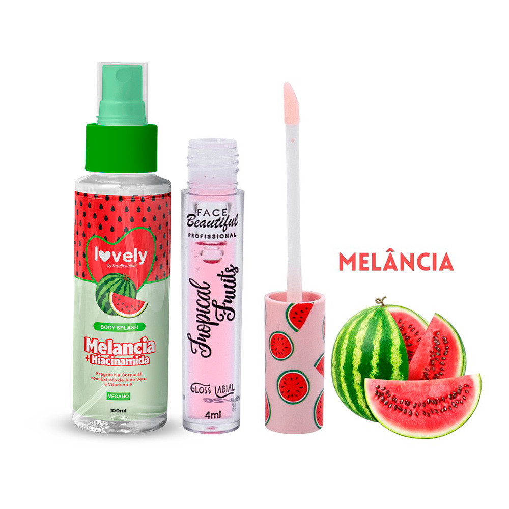 Kit Body Splash Corporal Gloss Labial com Cheirinho de Fruta Face Beautiful