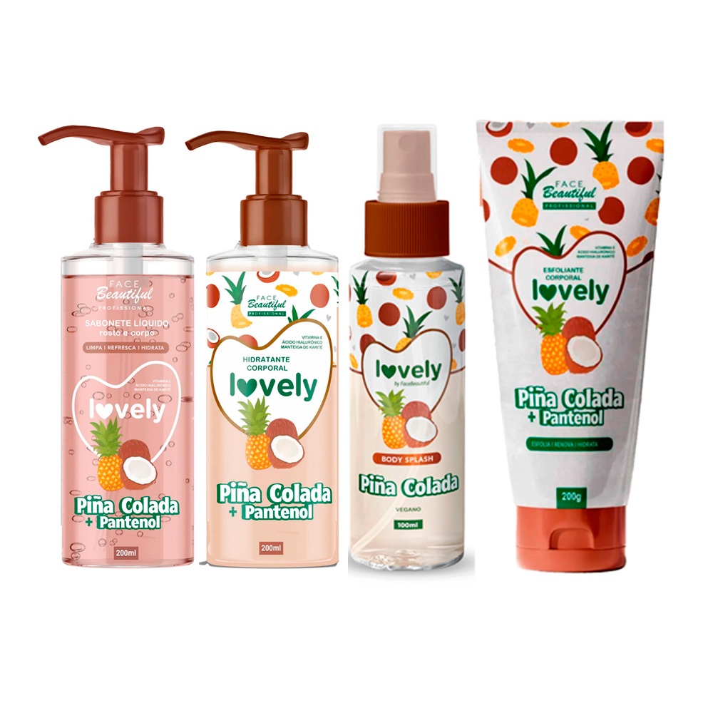 kit Corpo Cuidados no Banho Esfoliante Sabonete Hidratante Body Splash Corporal Face Beautiful