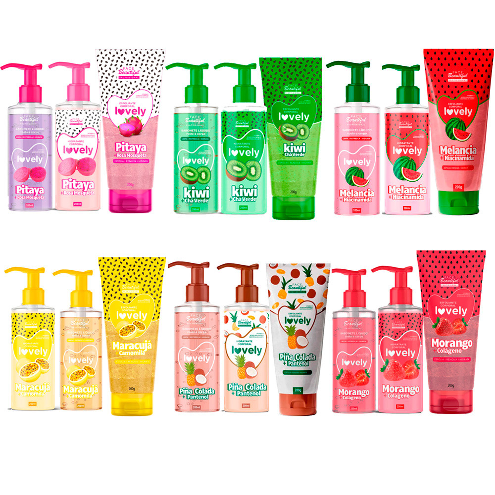 Kit Frutinha Esfoliante Sabonete Hidratante Corporal Pump Lovely Face Beautiful