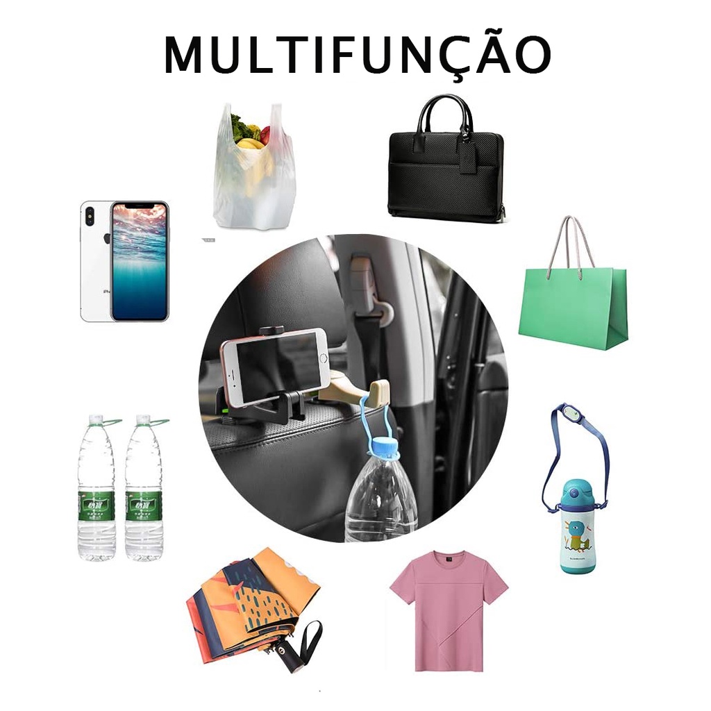 Suporte Celular Adaptador Veicular Gancho P/ Banco de Carro