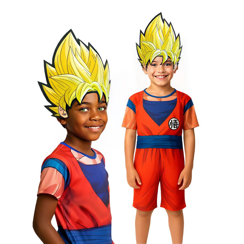 Fantasia Goku Dragon Ball + Mascara Cabelo Super Saiyajin - Anime Cosplay