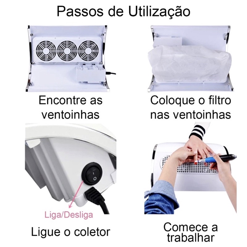 Aspirador Coletor de pó de Unha Sugador 3 Ventoinhas Manicure Profissional Alongamento Gel Fibra